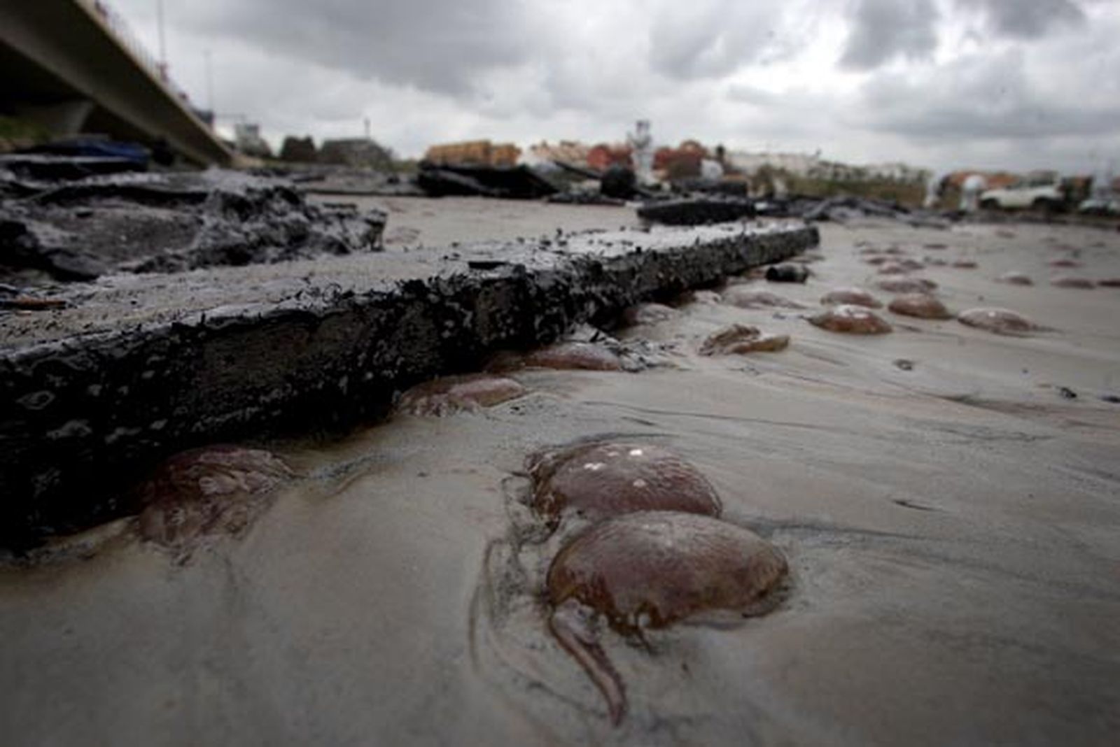 El grupo ecologista de Agaden en el Campo de Gibraltar alertó hoy de la llegada de medusas muertas a la playa de La Concha, en Algeciras que, a su juicio, son «consecuencia directa de los vertidos del 'New Flame'» y anunció que darán cuenta de este hecho a las autoridades de la Unión Europea.