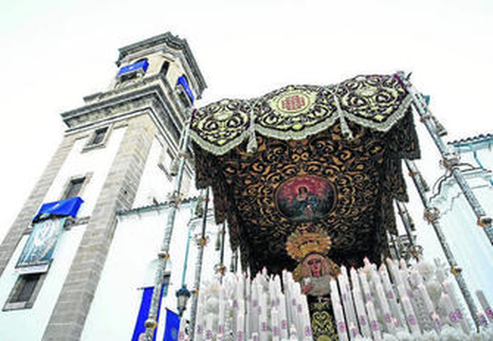 Todas las hermandades algecireñas acompañan en la salida extraordinaria a la Virgen, que estrena una saya bordada a partir de un traje donado por Ruiz Miguel