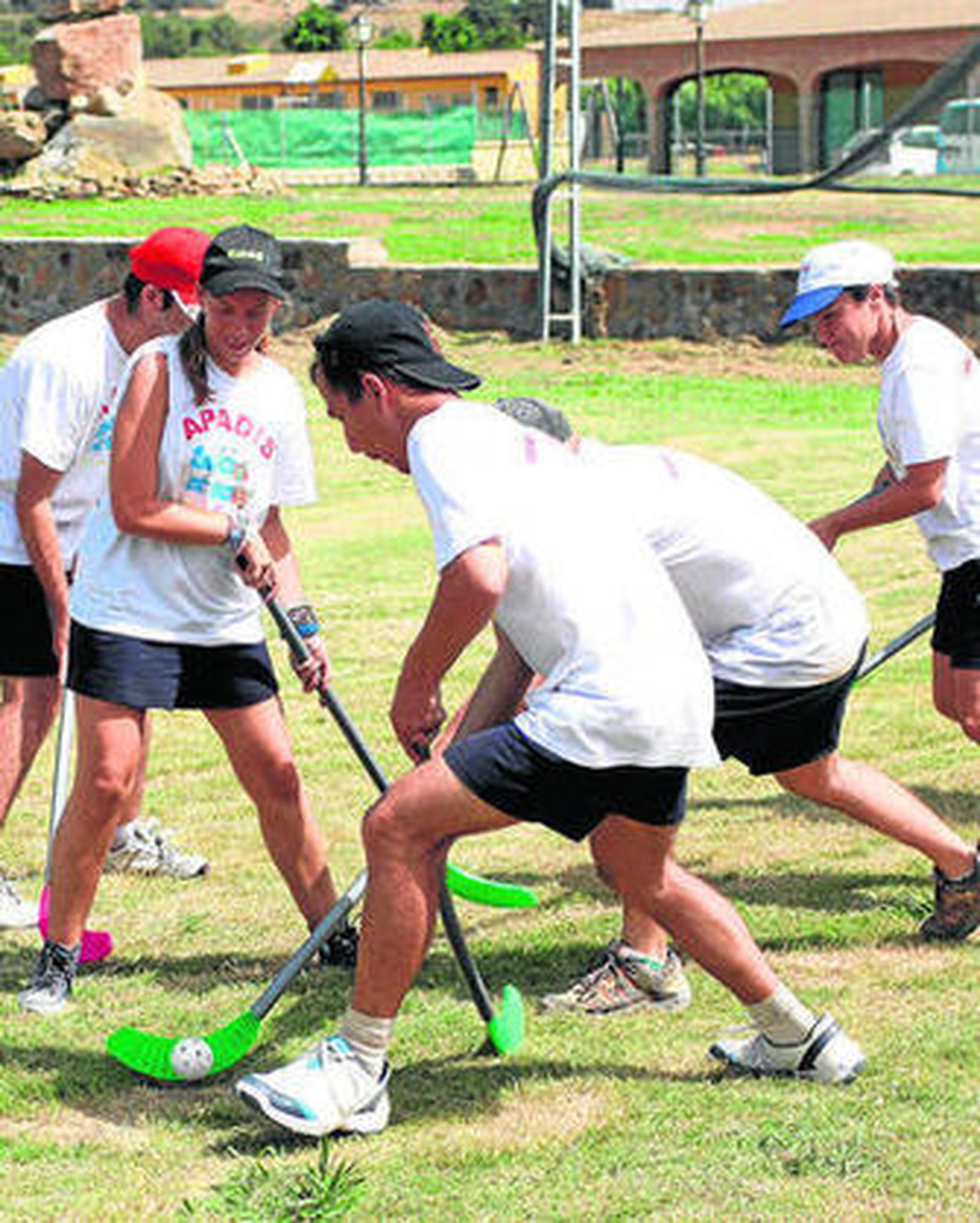 José María España trabaja con ellos como monitor, coordinando algunas de las actividades que realizan a lo largo de la mañana. Los conduce a todos al césped para jugar al hockey. Luego los divide en dos equipos, uno verde y otro rosa. Y comienzan a jugar. Mientras los observa, el monitor comenta que ese ejercicio les sirve para trabajar la coordinación óculo-manual. "Además, la práctica deportiva les ayuda porque fomenta las relaciones interpersonales y contribuye a una buena utilización del ocio y tiempo libre", dice el monitor.