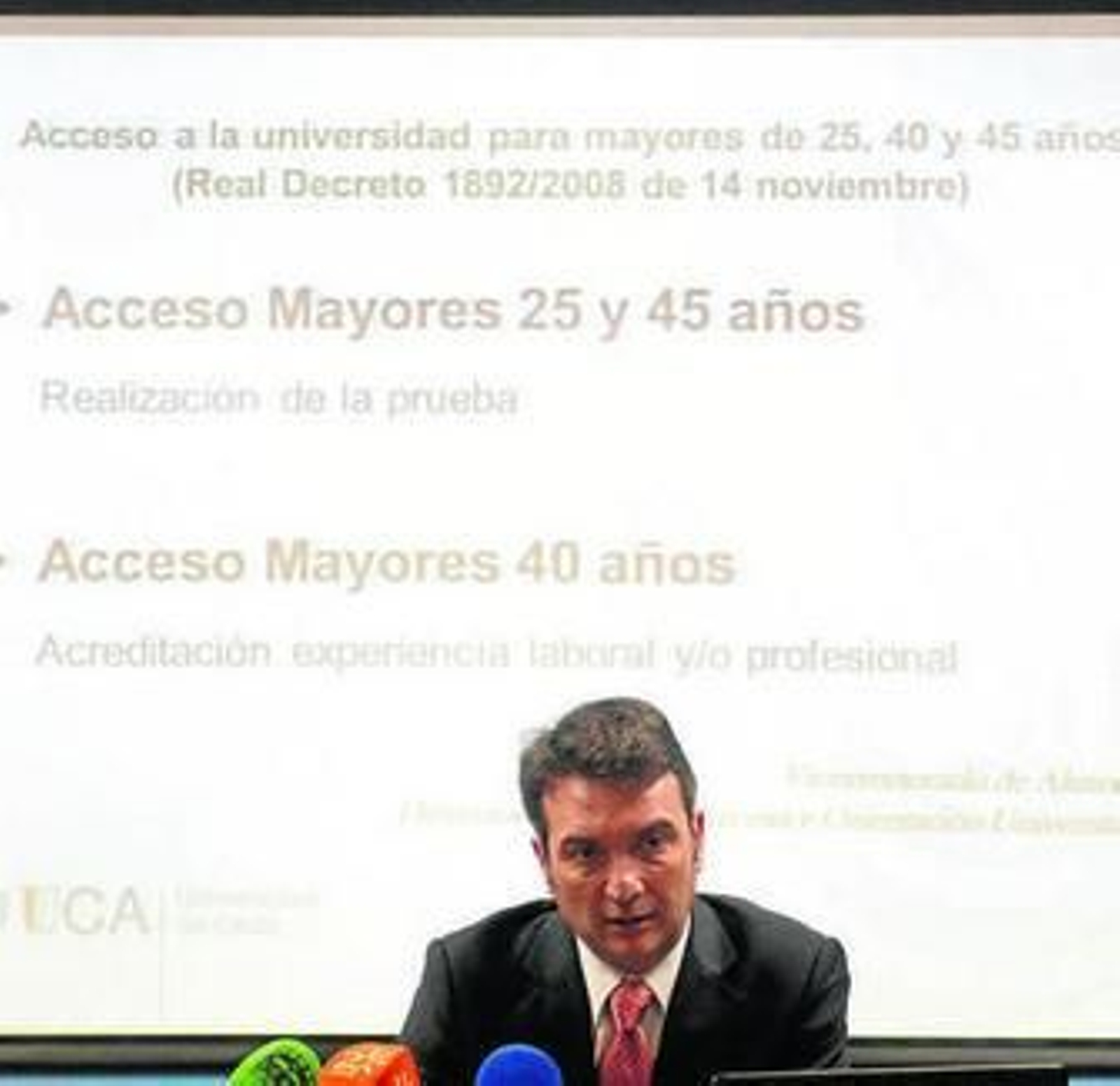 El director general de Acceso de la Universidad de Cádiz, Eduardo González Mazo, anunció ayer las fechas de solicitudes para presentarse a las pruebas de acceso a la universidad para mayores de 25, 40 y 45 años. El plazo de inscripción para los mayores de 40 años se abre el próximo lunes hasta el 28 de enero, mientras que para los mayores de 25 y 45 años el plazo se extiende desde el 1 al 21 de marzo. La entrega de la documentación necesaria en Algeciras se realizará en la sede de la Universidad de Servicios Generales.