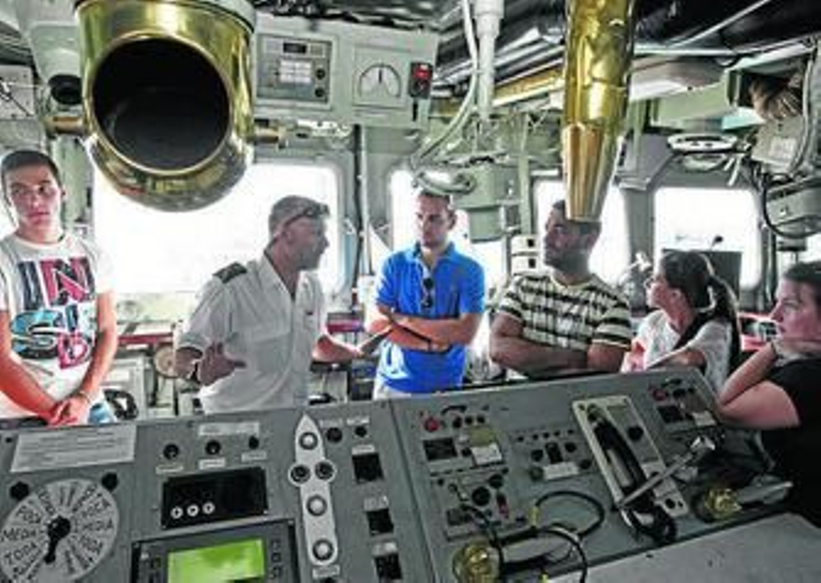 Hay muchas zonas restringidas y la visita se limitó a pisar la cubierta -y conocer todo lo que asoma desde ella e impresiona desde tierra- y el puente de gobierno. Pero basta para ver de cerca el radar aéreo, el radar de sensor de tiro y dos lanzadores de misiles tierra-aire, que, como la tripulación explica, no es como en las películas, sino que explotan justo antes de llegar al objetivo. Y también para ver desde el puente de navegación, uno no se puede acercar más, lo que ha sido rebautizado como El Manolo, que no es otra cosa que el cañón de 20 disparos de ritmo de fuego, proyectiles que llegan del suelo a la cintura de cualquiera.
