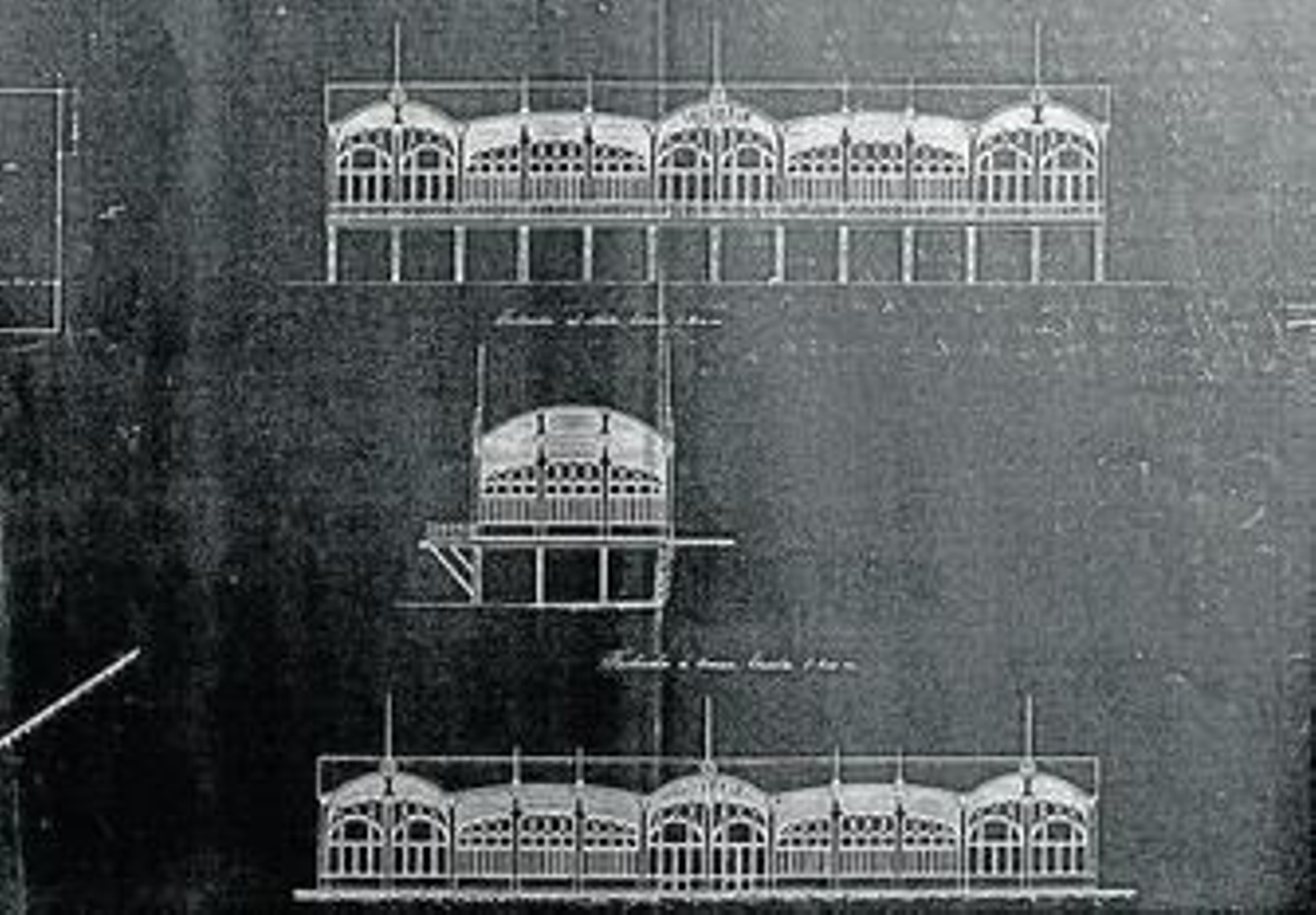 El primitivo proyecto, obra del arquitecto Santiago Sanguinetti y promovido por el ciudadano francés Cruissé d`Ancourt alcanzababa las 69.200 pesetas y fue aprobado por el Gobierno Civil el 7 de abril de 1911 mediante concesión administrativa temporal, por ocho años, al final de los cuales pasaría a ser propiedad del Ayuntamiento de Algeciras y la sociedad de Mr. D`Ancourt sería su arrendatario. Era un precioso pabellón de estilo modernista, de madera , hierro y cristal, como se aprecia en el plano adjunto.