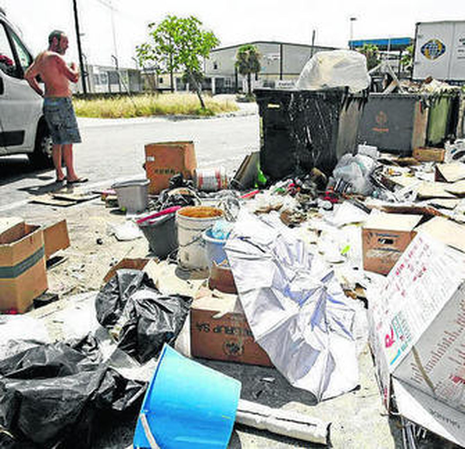 El polígono Cortijo Real volvió a presentar este fin de semana una lamentable imagen. En diferentes puntos del acerado a lo largo del recinto industrial se agolparon montañas de escombros, unido a vertidos ilegales de neumáticos o diferentes productos de peligrosidad para ser depositados en la vía pública.
