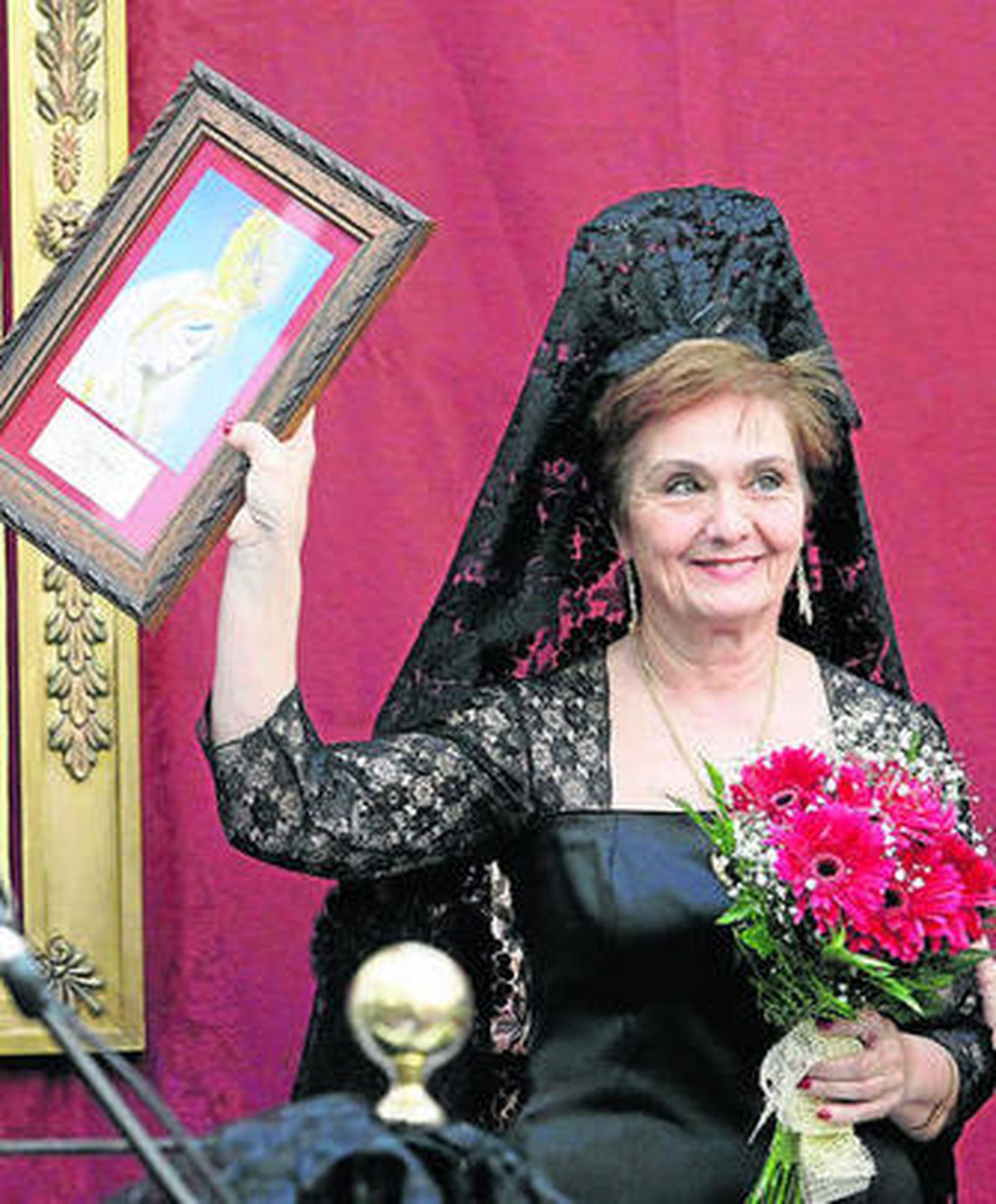 Para Delgado Rubio, por encima de todos los cargos que ha ocupado la presidenta, están sus valores y virtudes y agradeció con emoción que le eligiera presentador. "Quiero arroparte y animarte. Tu Virgen de la Piedad te apoya. Cuando el corazón habla llega como una flecha a quien lo escucha", dijo para dejar paso a la exaltadora ataviada de mantilla que subió al atril acompañada de los saeteros Pepi Bedriomo, Manuel Ortega y Lola Sanabria.
