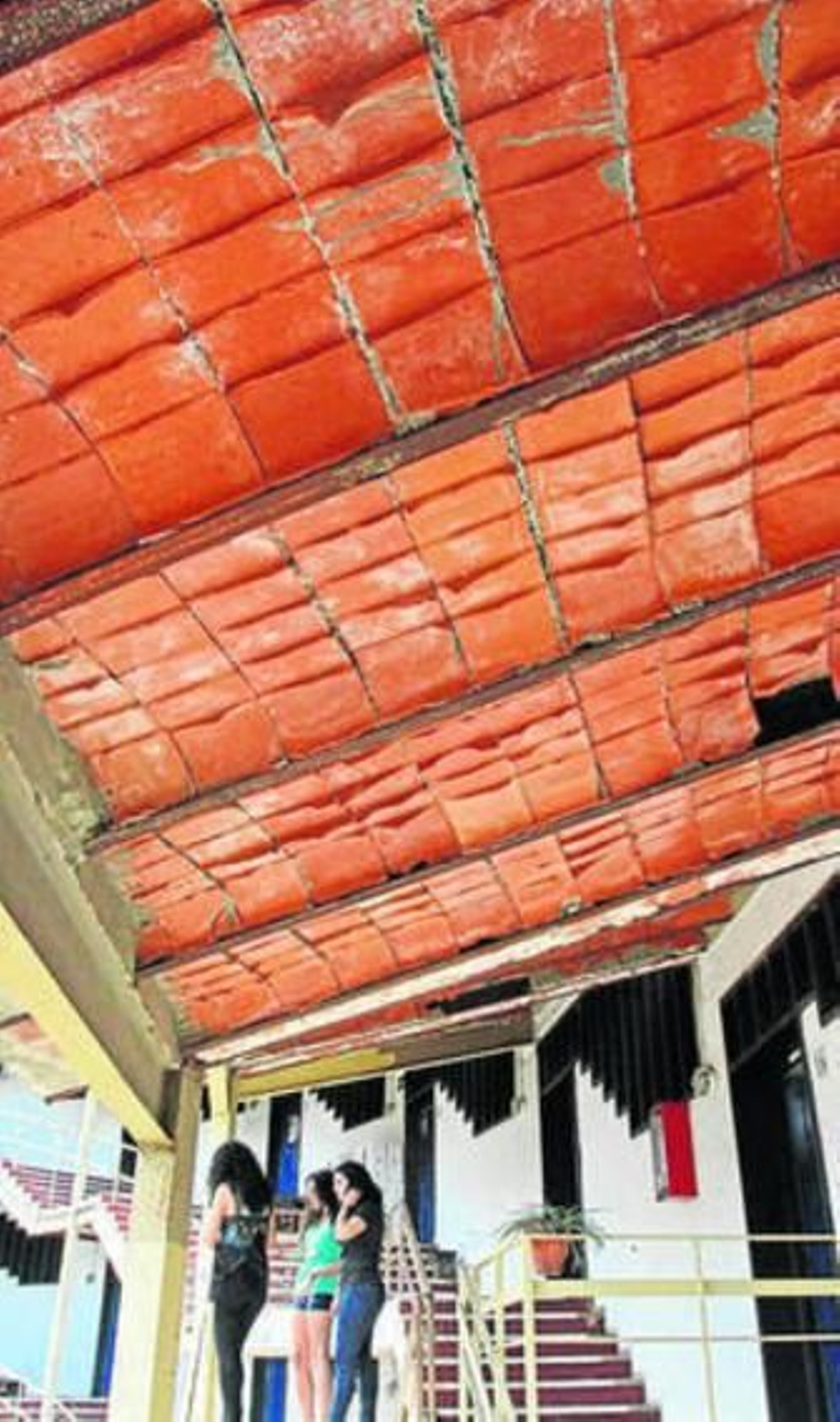 La Junta de Andalucía invertirá 85.000 euros para atender las quejas de la Escuela de Arte y Oficios de Algeciras. Ese dinero irá destinado al arreglo del techo del salón de actos, clausurado desde mediados de julio tras desprenderse una pequeña parte de la cornisa. No correrán la misma suerte otros daños estructurales como la fachada, con una grieta en la que cabe incluso una mano, ni la avería de agua que hace perder 14.400 litros al mes al centro.