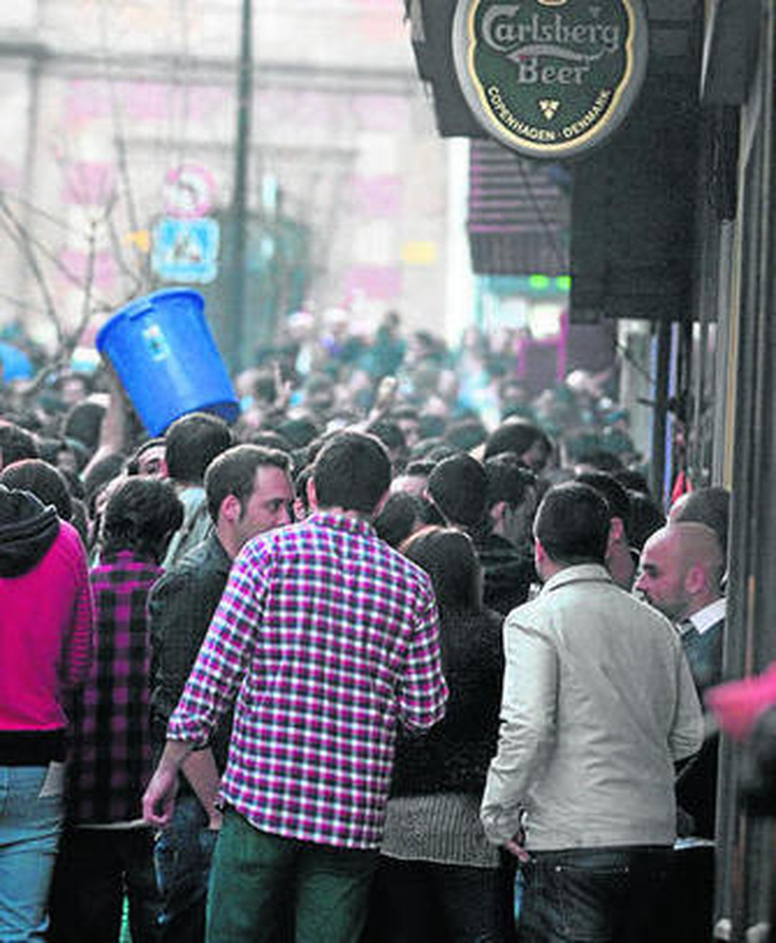 Muñoz confirma dos peleas, una en el Llano Amarillo y otra en plaza Verboom. Los más jóvenes hacen el botellón en el Llano Amarillo y el resto prefiere tapear y luego ir a los pubs