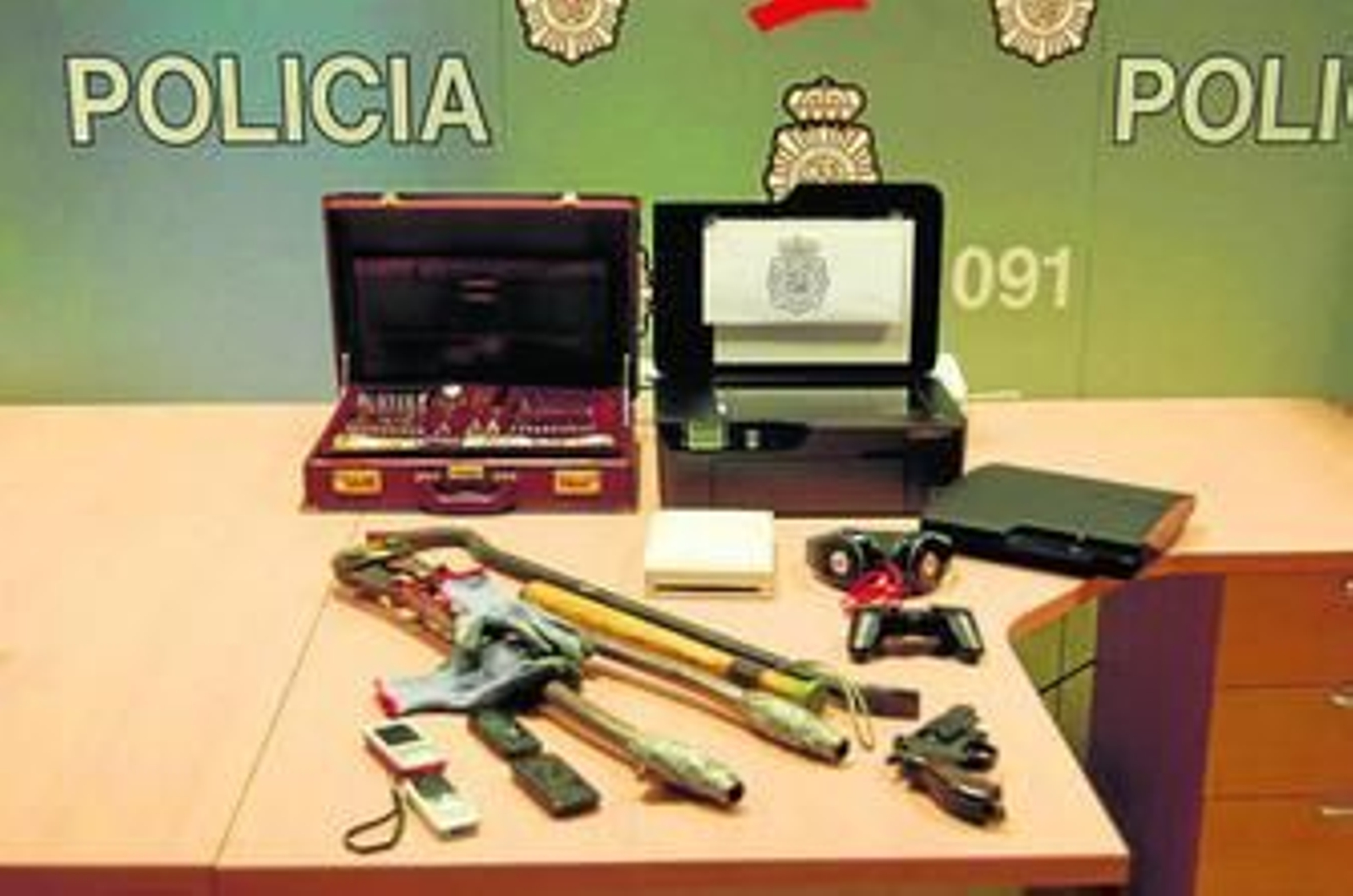 Debido a la relación de los implicados con hechos de esta naturaleza patrimonial se procedió por parte del Grupo de Atención a la Familia y de Grupo de Delitos Patrimoniales, a la práctica de cuatro registros en domicilios, donde se intervinieron un arma de fuego simulada, herramientas y numerosos efectos presuntamente sustraídos entre ellos algunas televisiones, cuya procedencia será analizada por el Grupo Especializado de Robos.