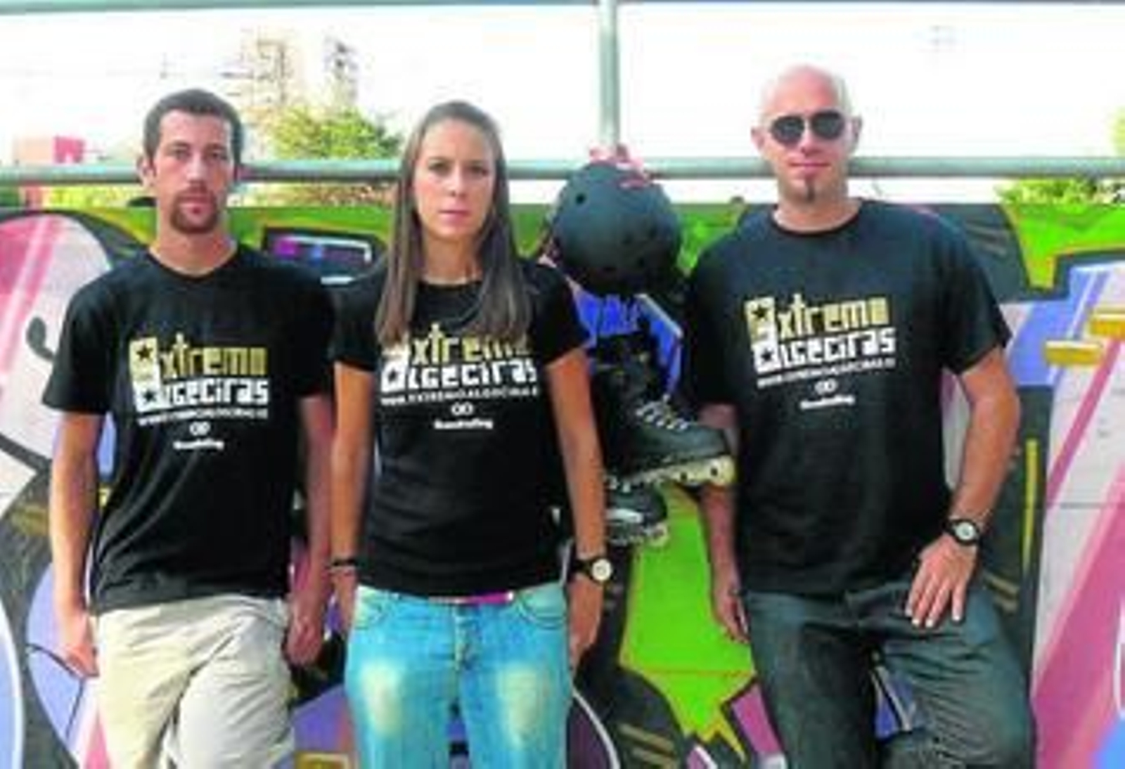 Patinadores en línea Los tres son el corazón del 'Bahía Extreme', que se desarrollará este domingo. Animan a la cultura del patín en línea y para ello empezarán a dar clases gratuitas a partir de octubre.