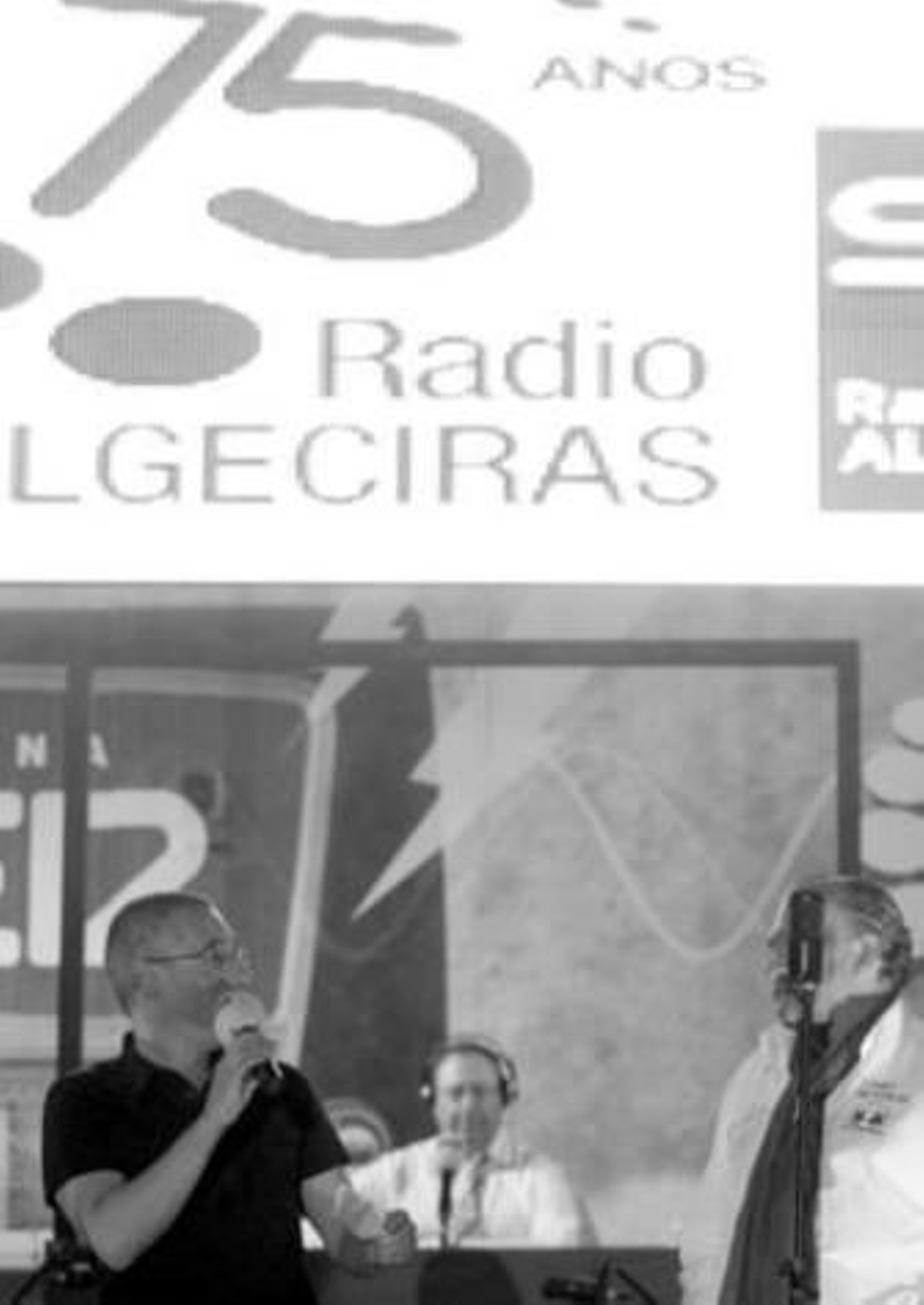 El equipo de Radio Algeciras Cadena Ser convirtió ayer el escenario instalado en el parque María Cristina en un improvisado programa radiofónico. Un recorrido desde los años 50 hasta la actualidad con las voces de los locutores que más han representado a los ciudadanos algecireños. Las apariciones estelares de grandes profesionales de las ondas se mezclaban con las pinceladas musicales, todas acompañadas por el guitarrista local Salvador Andrades.