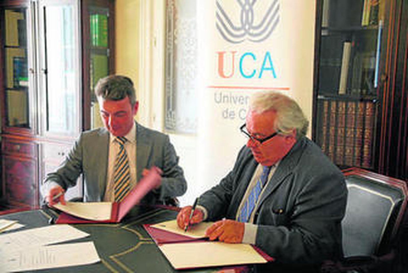 El rector de la Universidad de Cádiz (UCA), Eduardo González Mazo, y el decano del Ilustre Colegio de Abogados de Cádiz, José Manuel Jareño Rodríguez Sánchez, firmaron ayer un convenio de colaboración académica. El documento alzará a la UCA como la institución académica de referencia para el curso de formación de la Escuela de Prácticas Jurídicas del Colegio de Abogados sobre acceso a las profesiones de abogado y procurador.
