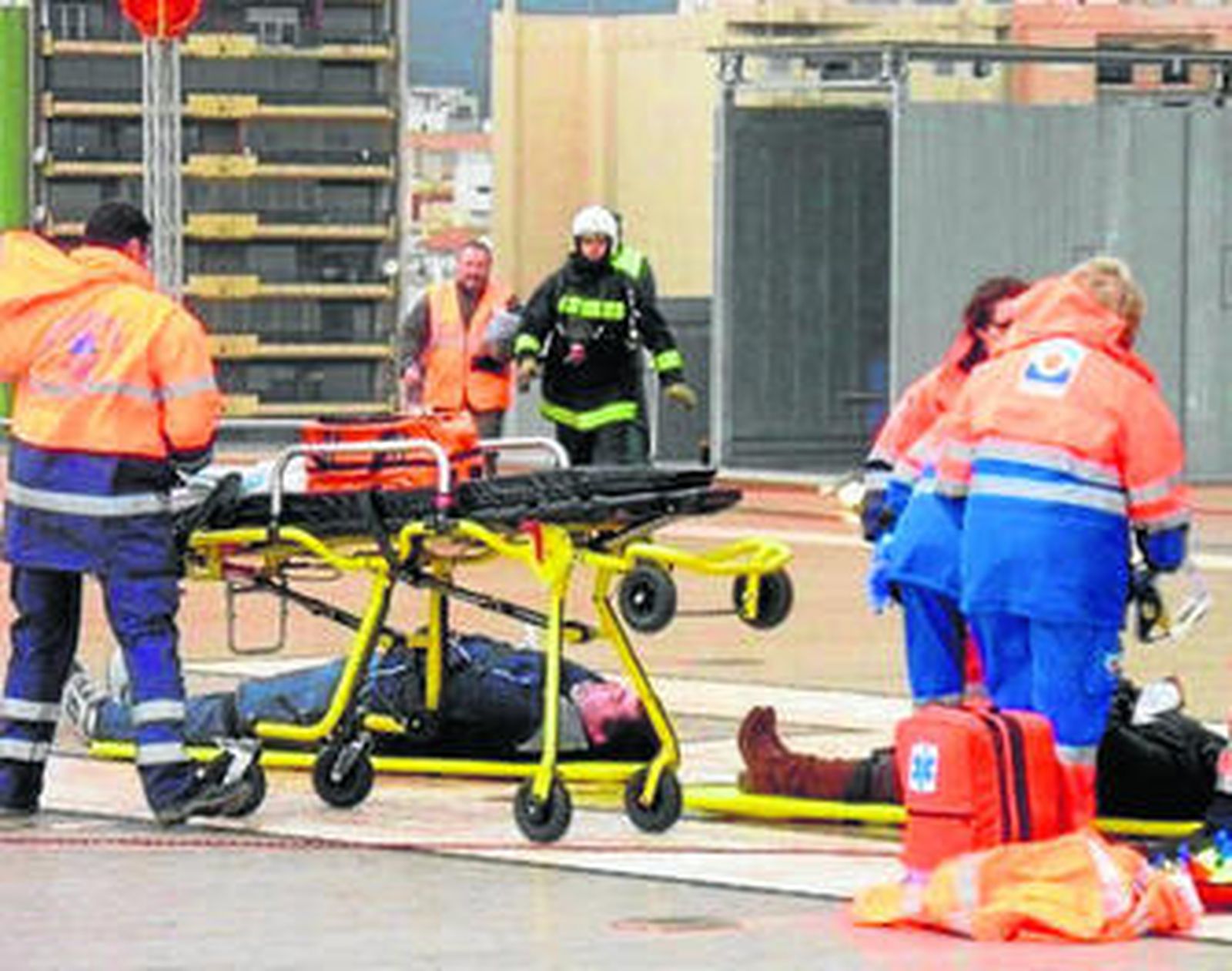 Un ficticio accidente aéreo en el helipuerto probó ayer la capacidad de reacción de todo el personal que interviene en estos casos: desde sanitarios hasta los cuerpos de seguridad. Si hubiera sido real, hoy estaríamos contando una tragedia con 2 muertos, 2 heridos muy graves, otros tantos graves y 6 heridos leves o ilesos.