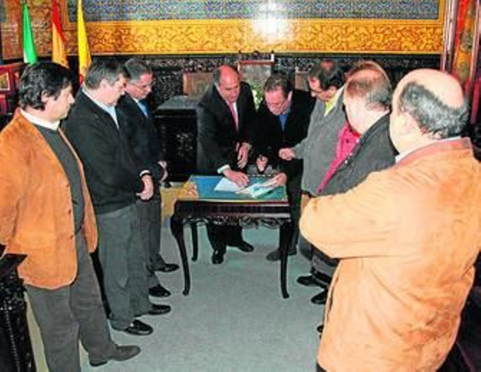 El equipo de gobierno y los representantes de la plantilla municipal escenificaron ayer el cierre de las negociaciones sobre el nuevo convenio colectivo. El alcalde y los representantes sindicales rubricaron el pacto laboral alcanzado, con la firma del documento en el salón de plenos del Ayuntamiento.