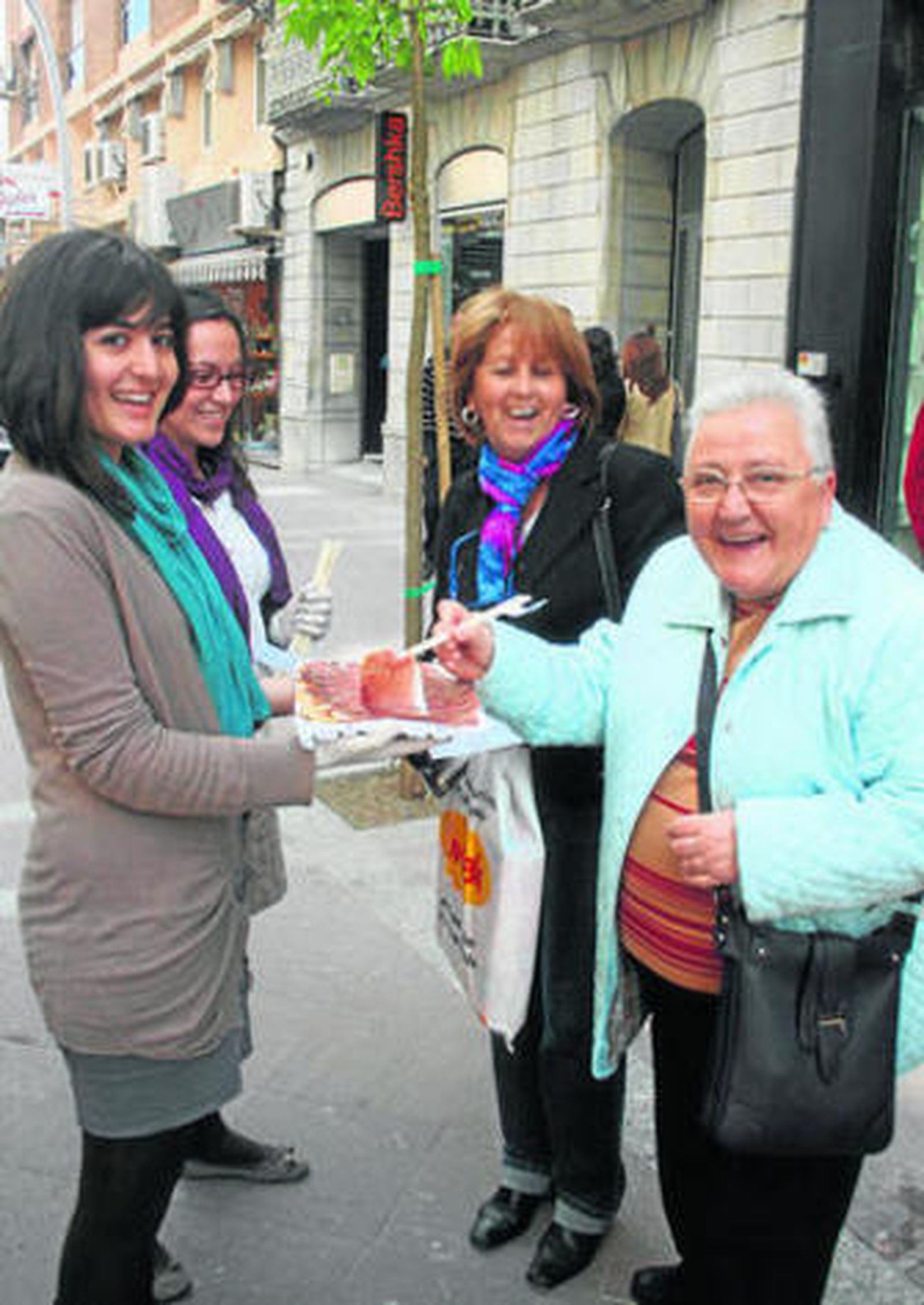 La Asociación de Enfermos y Familiares de Parkinson del Campo de Gibraltar salió ayer a la calle para dar a conocer a los viandantes en qué consiste esta enfermedad que conlleva un desorden del sistema nervioso central y que afecta a estructuras del cerebro encargadas del control y coordinación del movimiento, del mantenimiento del tono muscular y de la postura. El domingo se celebra el Día Mundial de la enfermedad y para llamar la atención ofrecieron a los viandantes varias bandejas de jamón.