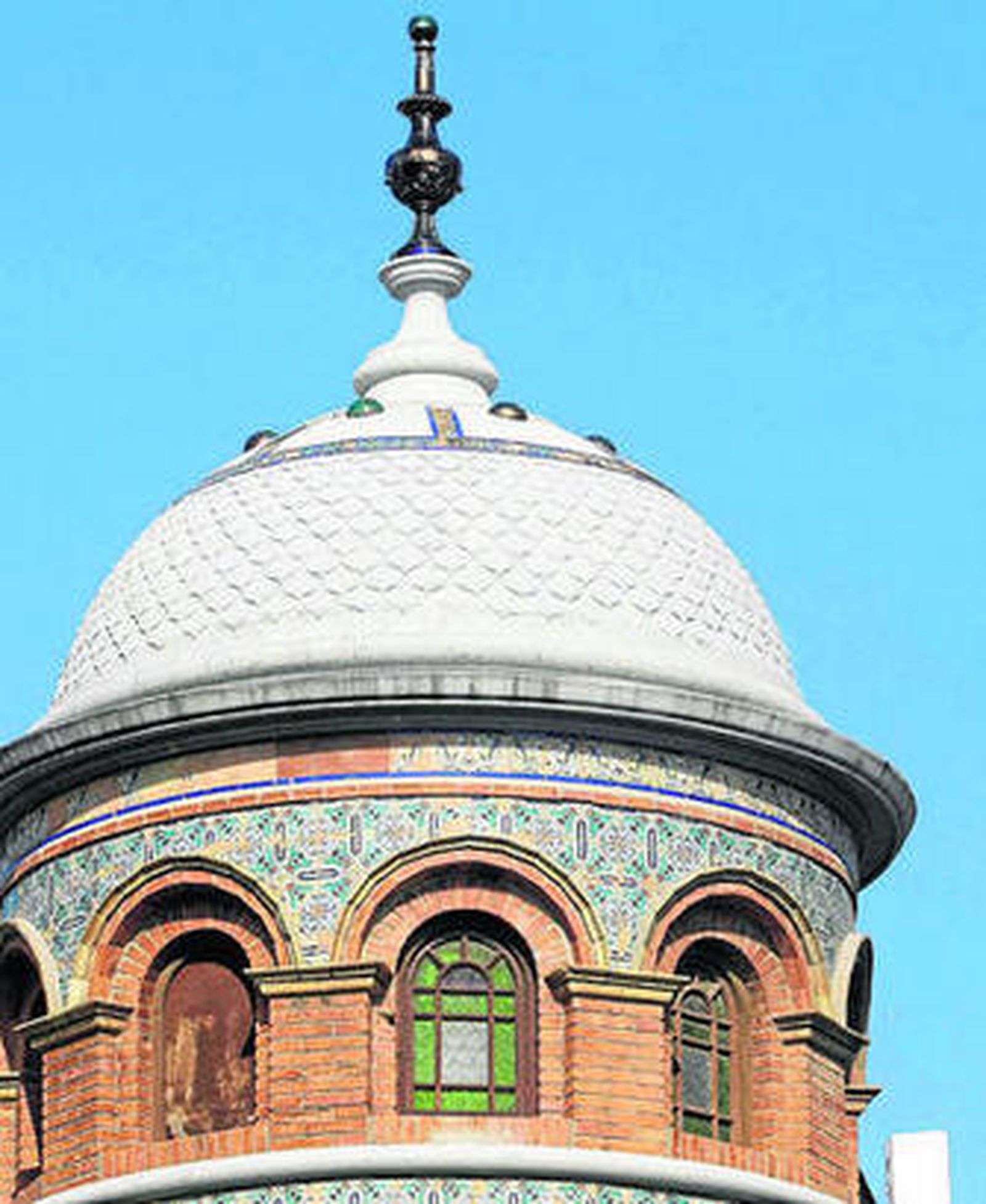 En el extremo agudo ante la calle Duque de Almodóvar destaca la esquina curva rematada por un pabellón cilíndrico.