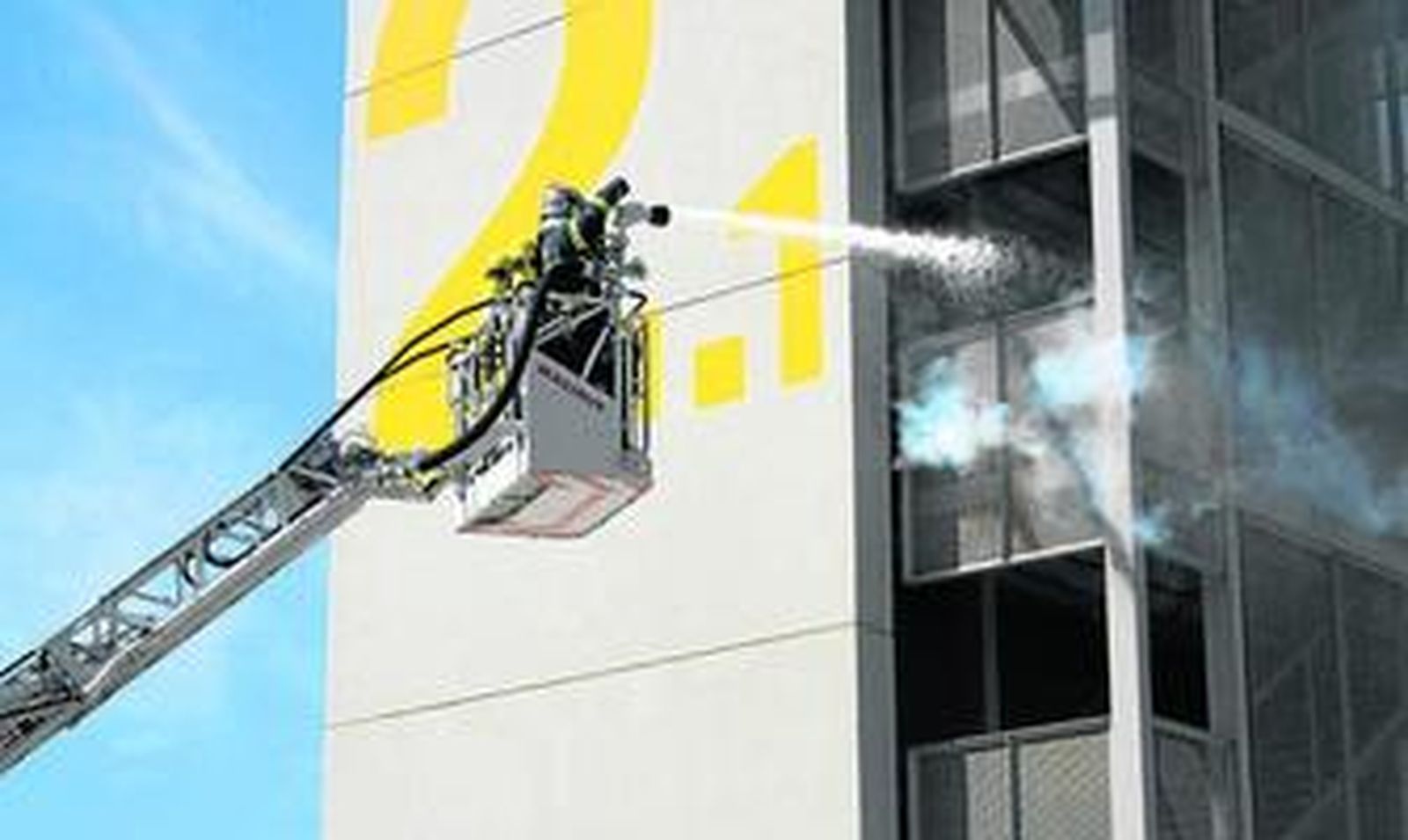 En el siguiente supuesto, el incendio está localizado en una cuarta planta y se puede acceder por una ventana. En este caso se utiliza el coche escala, que permite acceder hasta a 30 metros de altura. Pero no siempre se puede llegar al incendio con la autoescala puesto que o no hay vía, o ésta está obstruida y son casos aislados.