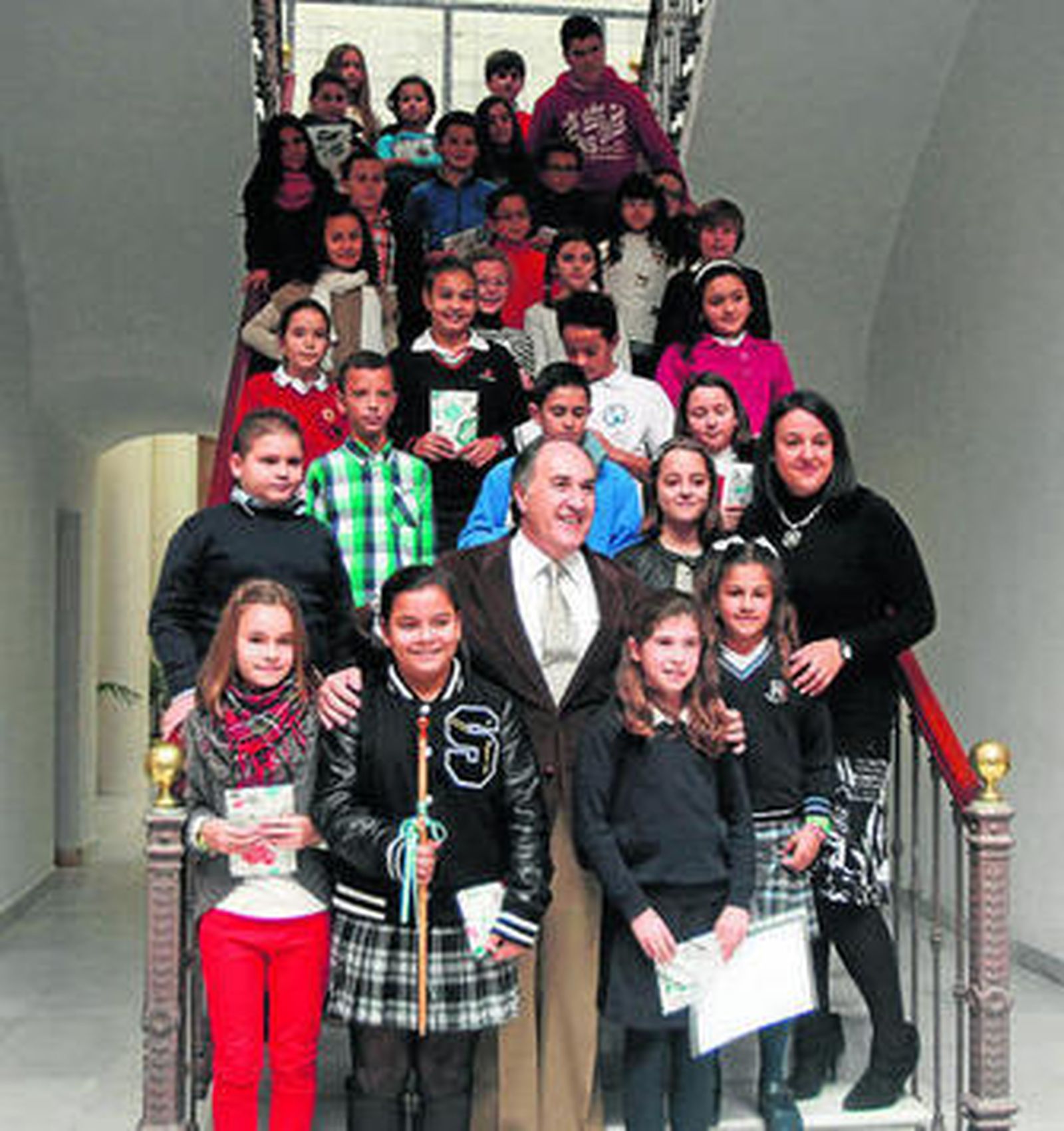En el comienzo de la simbólica sesión plenaria el alcalde, José Ignacio Landaluce, le hizo entrega precisamente a la joven Cristina de esa réplica a escala del bastón de mando de la ciudad, para que lo guardase como recuerdo y dio la bienvenida a los integrantes de la corporación infantil y a sus familiares, que llenaron con ilusión el salón de plenos, animando a su vez el primer edil a los niños a que en un futuro cercano participen en la vida pública de la ciudad. Junto al sillón presidencial estaba también la edil de Educación, Laura Ruiz,