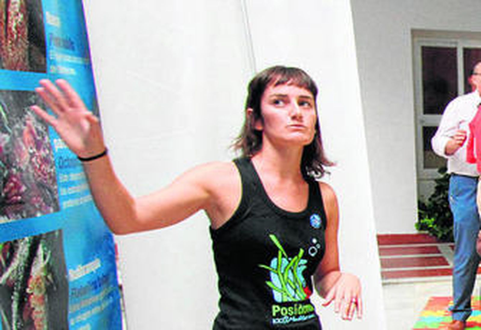 Técnico de Medio Ambiente Carolina y otros monitores del proyecto Life+ Posidonia muestran hasta el día 27 en el edificio La Escuela de Algeciras los tesoros que esconde el Mediterráneo (foto: Fran Montes).