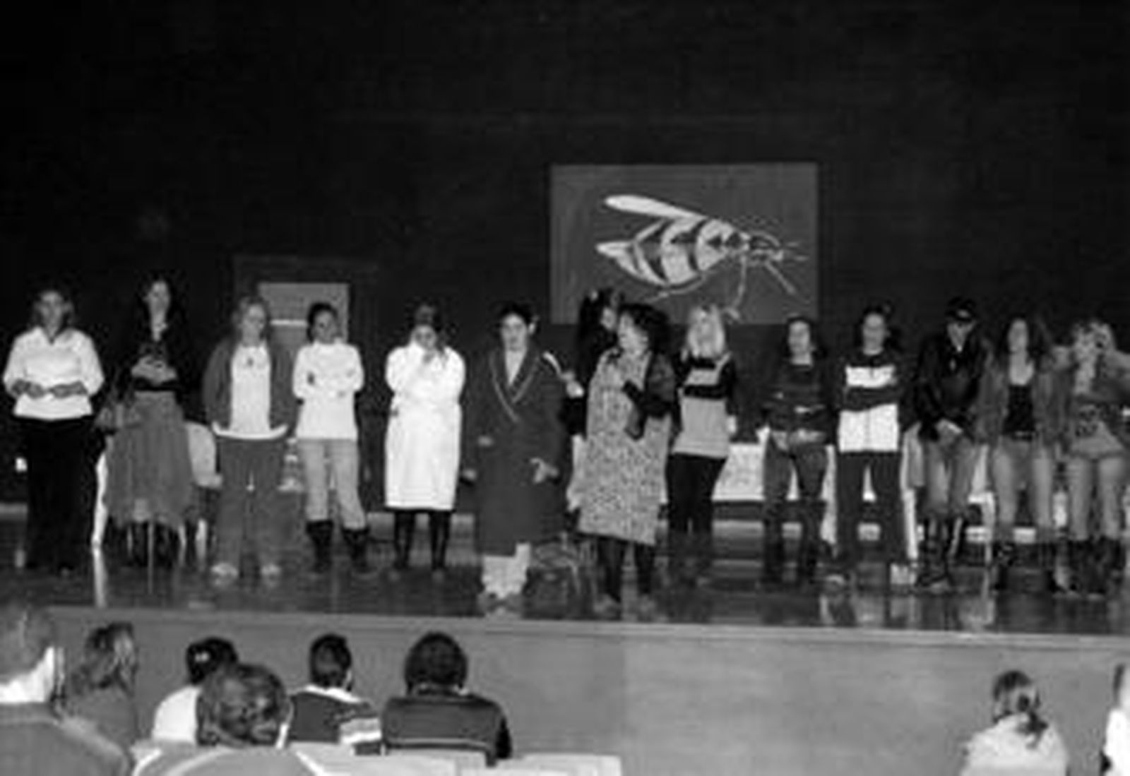 Hoy es uno de estos días especiales. Ante la atenta mirada de sus compañeras, pero también de algunos hombres internos, un grupo de quince mujeres representa sobre el escenario la obra El ataque de la avispa venenosa. "Teníamos poco tiempo para prepararlo y se decidió hacer algo sencillo", indica Octavio Moreno Molina, trabajador social perteneciente a Márgenes y Vínculos.