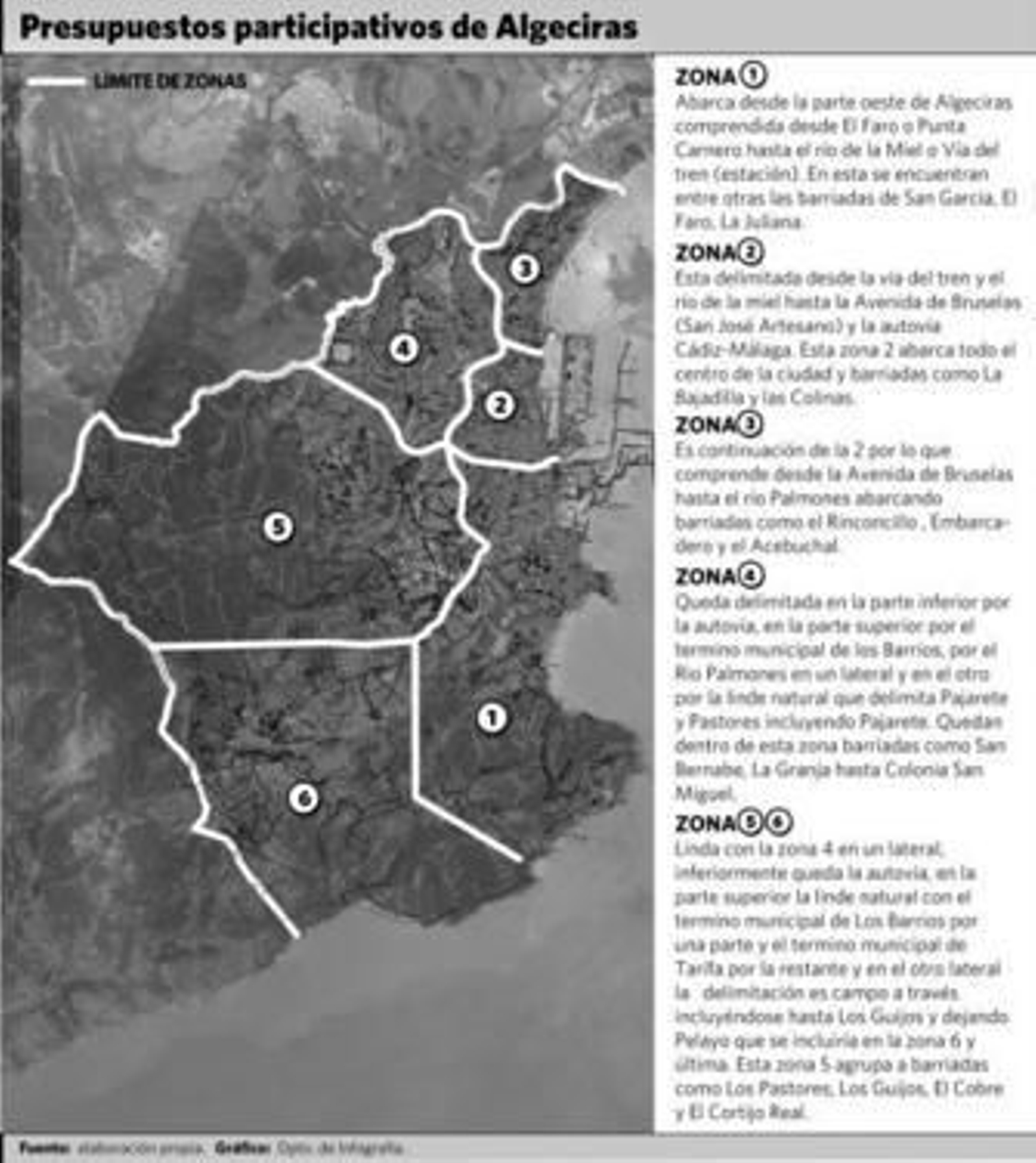 El equipo técnico de los presupuestos participativos está devolviendo a los grupos de ciudadanos que están tomando parte en este proceso las conclusiones a las que llegaron en unas recientes jornadas. Ahora deberán ser ratificadas ideas como el desarrollo del autorreglamento. Ya se conoce que seis son las zonas de trabajo marcadas -las que aparecen en el infográfico-.