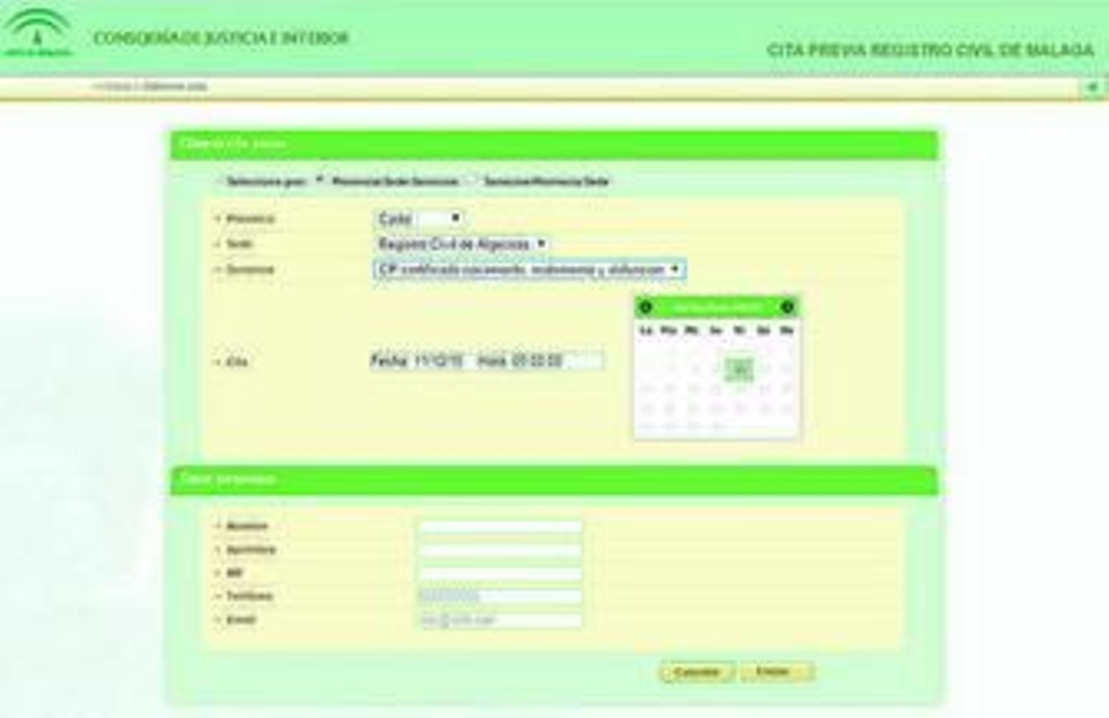El registro civil ofrece la opción de concertar algunas citas por internet