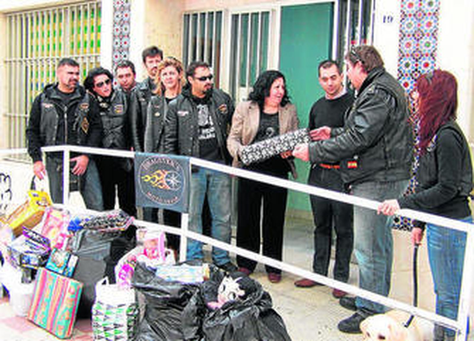 Presidente del Capítulo de Cádiz del Motoclub Dragster'sEl Motoclub espera recoger el próximo 2 de enero una buena cantidad de juguetes para los niños de la Villa. En la foto, Gutiérrez entrega los juguetes del pasado año junto al resto del club.