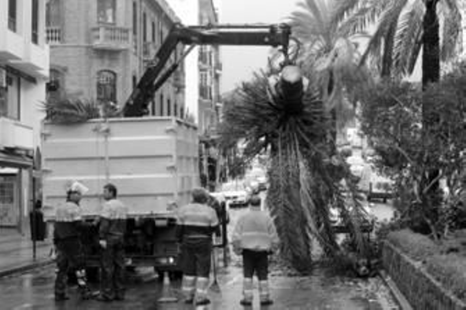 Numerosos establecimientos tuvieron que fijar sus cristaleras para evitar desprendimientos, además de muchos carteles de fachadas, como ocurrió con el de Euroferry en la avenida Virgen del Carmen. Una palmera también se desplomó en Blas Infante, impidiendo así que circularan los vehículos durante varios minutos. Fueron decenas las intervenciones que efectivos policiales y de bomberos tuvieron que realizar para paliar las rachas de viento que alcanzaron hasta los 90 kilómetros por hora.