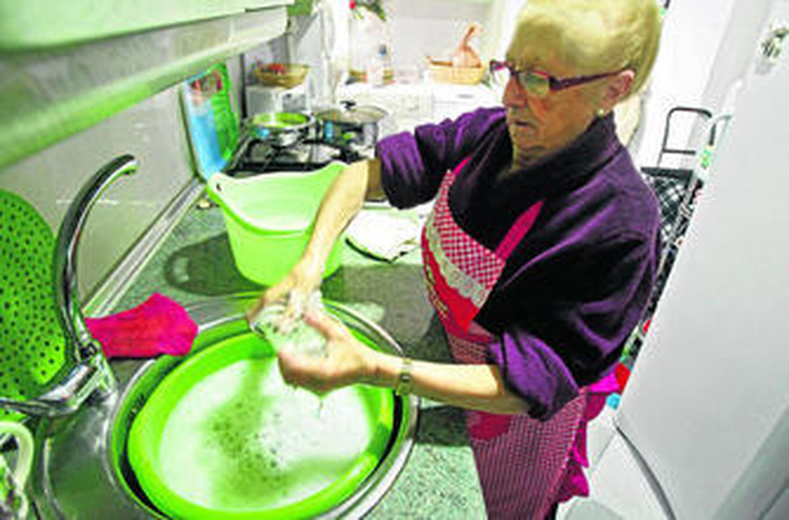 En su casa, en un séptimo piso, Fernando Utrera y Ángeles Santantón, una pareja de ancianos, se las intentaban apañar para tener agua. Con "un potajito" para comer, Ángeles comentó que "estoy fregando a la antigua", mientras que enseñaba dos barreños de plástico, uno para enjabonar y otro para aclarar. "Dios quiera que no se me haya quemado el lavavajillas", añadió. Fernando, por su parte, señaló que "hemos vuelto al año 44. He tenido que bajar unas cuantas veces a por agua y eso que con las cataratas no veo bien". El principal problema para ellos será el momento de la ducha, para la que emplearán el agua de las cubas, mientras que para beber han comprado agua mineral. "Para ducharnos, tendremos que hervirla para poder lavarnos como los gatos", apuntó Ángeles.