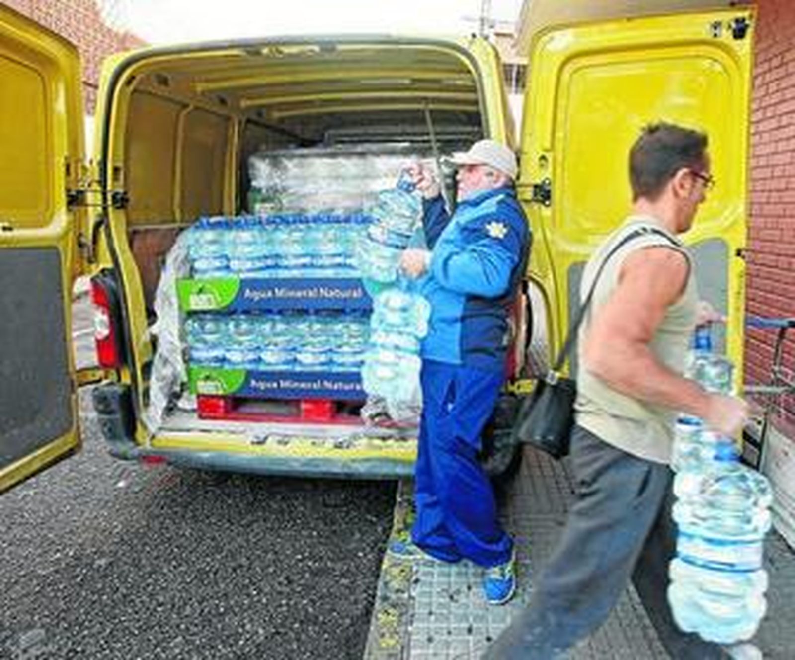 El corte en el suministro a las viviendas y los negocios provoca colas de vecinos para llenar garrafas de las cubas Los comercios se las ingenian para poder afrontar la actividad del primer día laborable