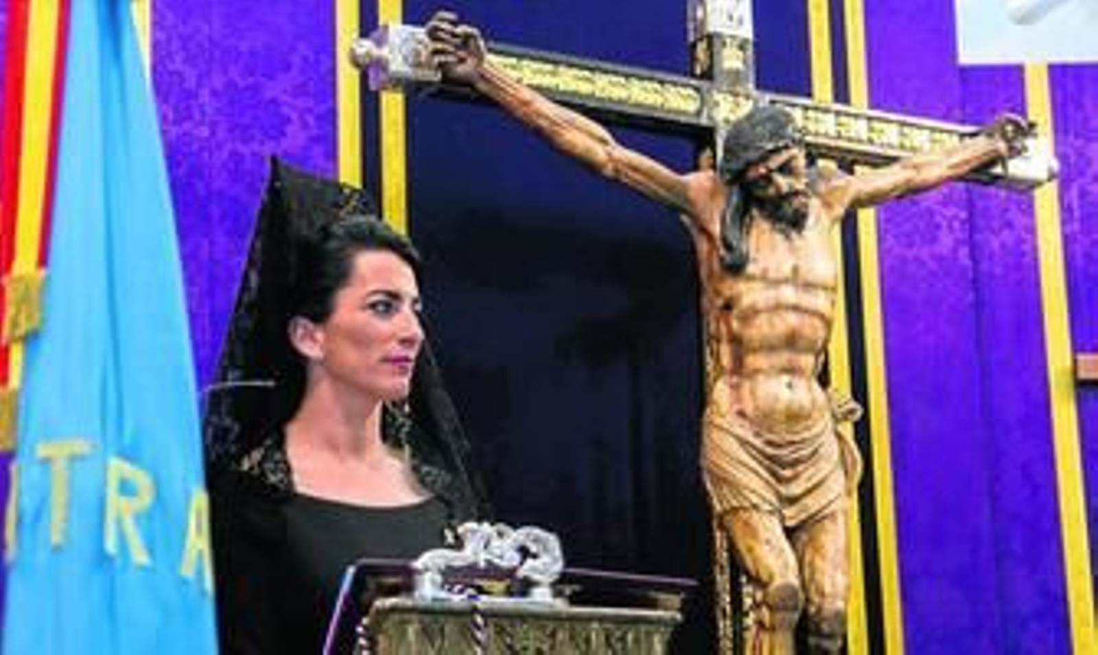 La cofrade tarifeña oficia un discurso con un marcado carácter musical para anunciar la inminente Semana Santa La pregonera también destaca la figura de las costaleras