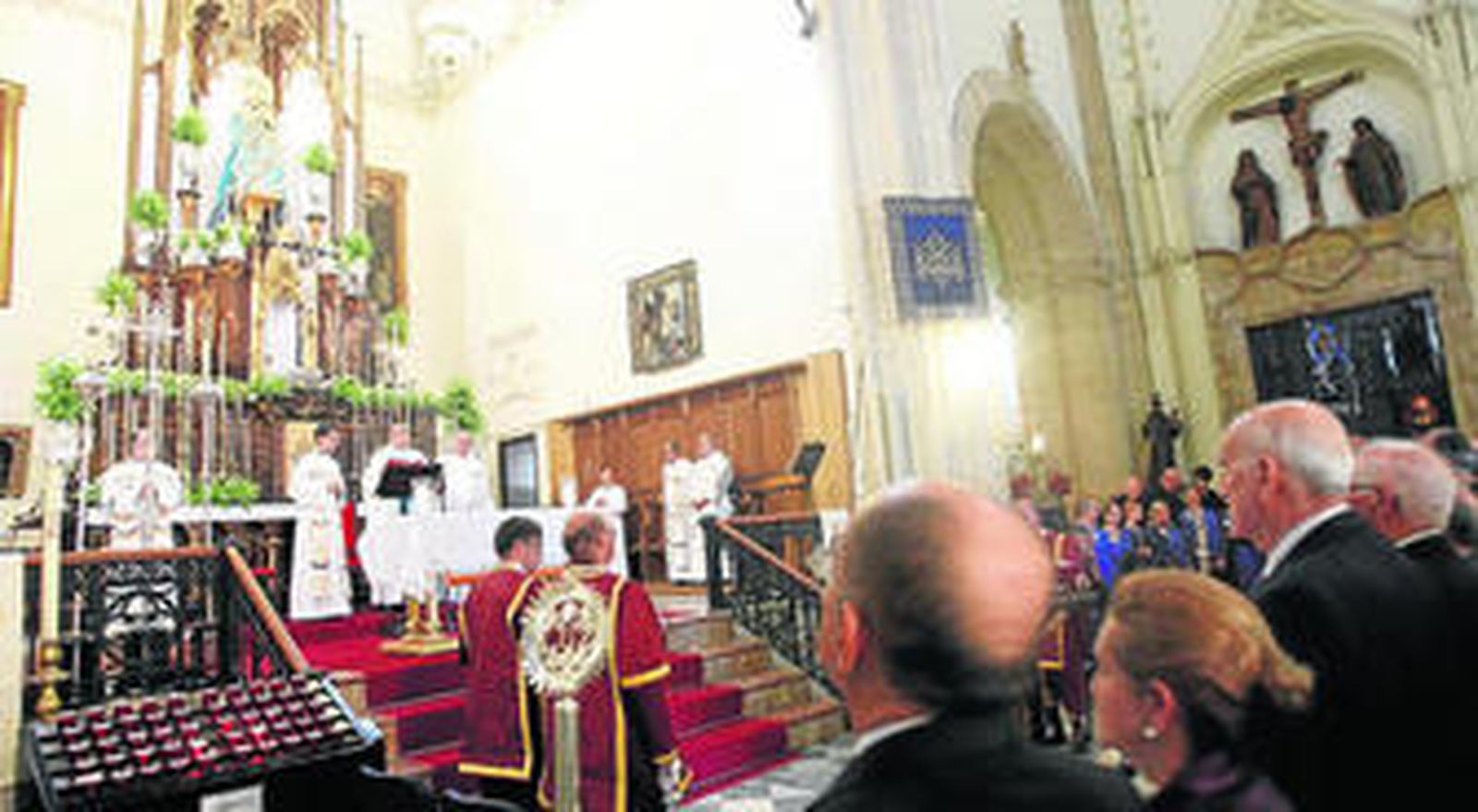 La iglesia de San Mateo, llena, acogió el oficio religioso de renovación del voto por el que la Corporación municipal, en representación de todos los tarifeños, proclamó a la Virgen de la Luz como patrona de Tarifa hace ahora 265 años. A la misa acudieron los representantes del equipo de gobierno y el resto de grupos de la Corporación bajo mazas, tal y como establece el protocolo de esta tradición y la corte juvenil de la Feria ya que fueron las encargadas de realizar la ofrenda floral a la imagen de la Luz que preside el altar mayor del templo de San Mateo. La homilía fue oficiada por el párroco Pedro Durán con sacerdotes con vinculación a la ciudad como Agustín Borrell, el vicario actual; Manuel Gómez, el delegado episcopal para las Migraciones, Gabriel Delgado; Francisco García, sacerdote en la capilla del hospital comarca; y Francisco Castillo Marchante, quien oficiará las novenas de septiembre. El templo estuvo tan abarrotado, que fueron cuatro párrocos los que dieron la comunión emplazados en distintas partes.