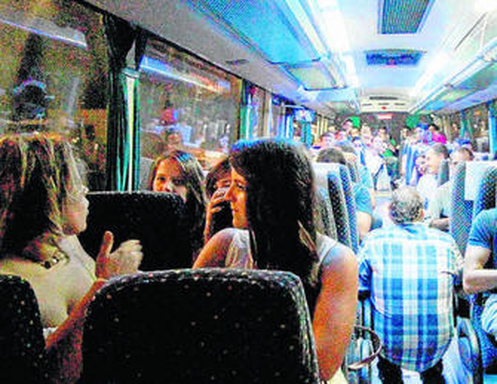 Jara, Elena y Juanca son tres de los casi 40 pasajeros del Búho Bus que van a disfrutar de la noche tarifeña. Es la segunda vez que utilizan la ruta y la valoración que hacen de ésta es favorable. Establecen que había una gran diferencia entre la ida y el viaje de regreso. Según explican los propios pasajeros, en el retorno los usuarios del Búho cantan, hablan más de la cuenta, duermen... Incluso hay gente que planea apearse en la parada de Carrefour de Los Barrios y acaba bajándose en la última parada de La Línea, no se sabe si por el sueño o porque los locales de copas cierran más tarde en esta localidad. "La última vez a la vuelta yo iba dormida", recuerda Jara, quien además dice que el vigilante de seguridad suele ser muy "buena gente" y que conversa alegremente con los viajeros. Y es que estos autobuses nocturnos desde las 0:30 horas llevan un guarda que vela por la seguridad a bordo del vehículo.