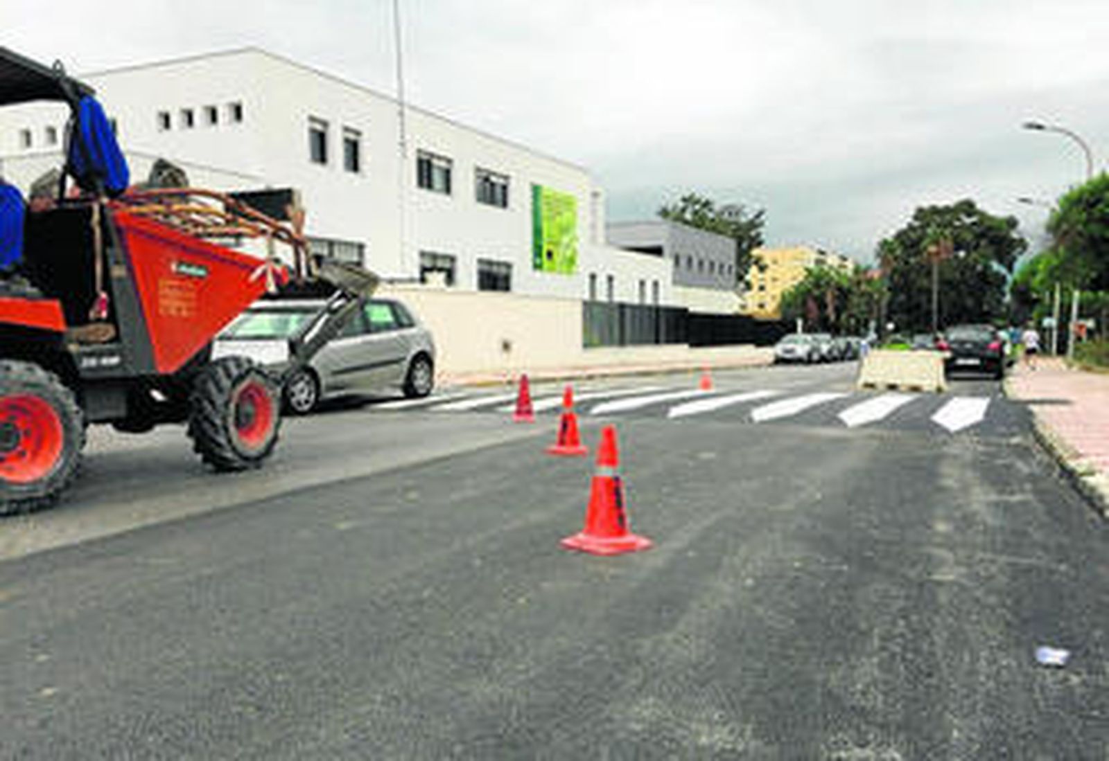 Durante la mañana de ayer, operarios municipales han estado pintado estos pasos peatonales sobreelevados en estas vías principales de la Villa, una vez que el material (asfalto) ha fraguado.