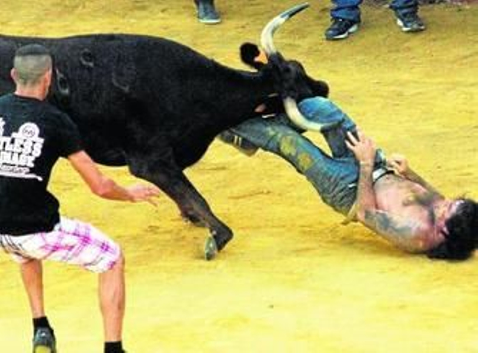 Ante Musiquero, de cinco años de edad , de unos 500 kilos de peso y marcado en el costillar con el número 93, se plantaron numerosos jóvenes y algún que otro talludito, y aunque el comportamiento del animal fue bastante noble, la falta de reflejos debido al alcohol a punto estuvo de costarle caro a más de uno.