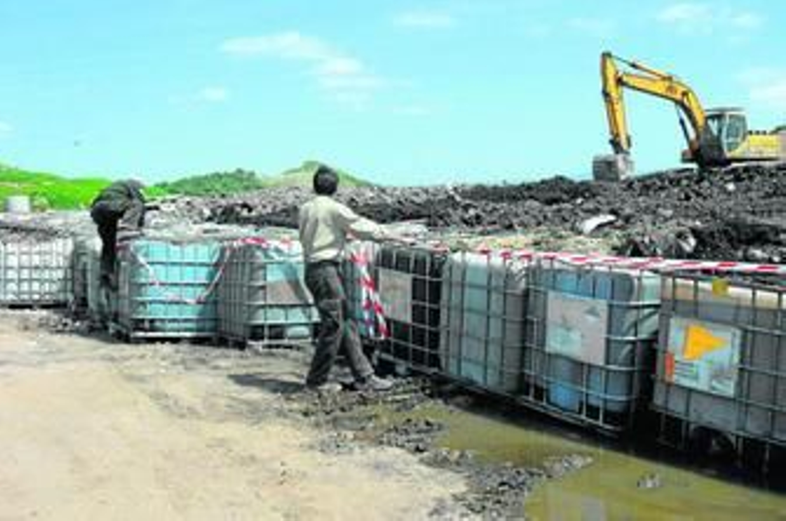 Los agentes de Medio Ambiente y una empresa externa verifican el tratamiento de las cubas que estaban enterradas en la planta Se han evacuado 4.000 metros cúbicos de lixiviados
