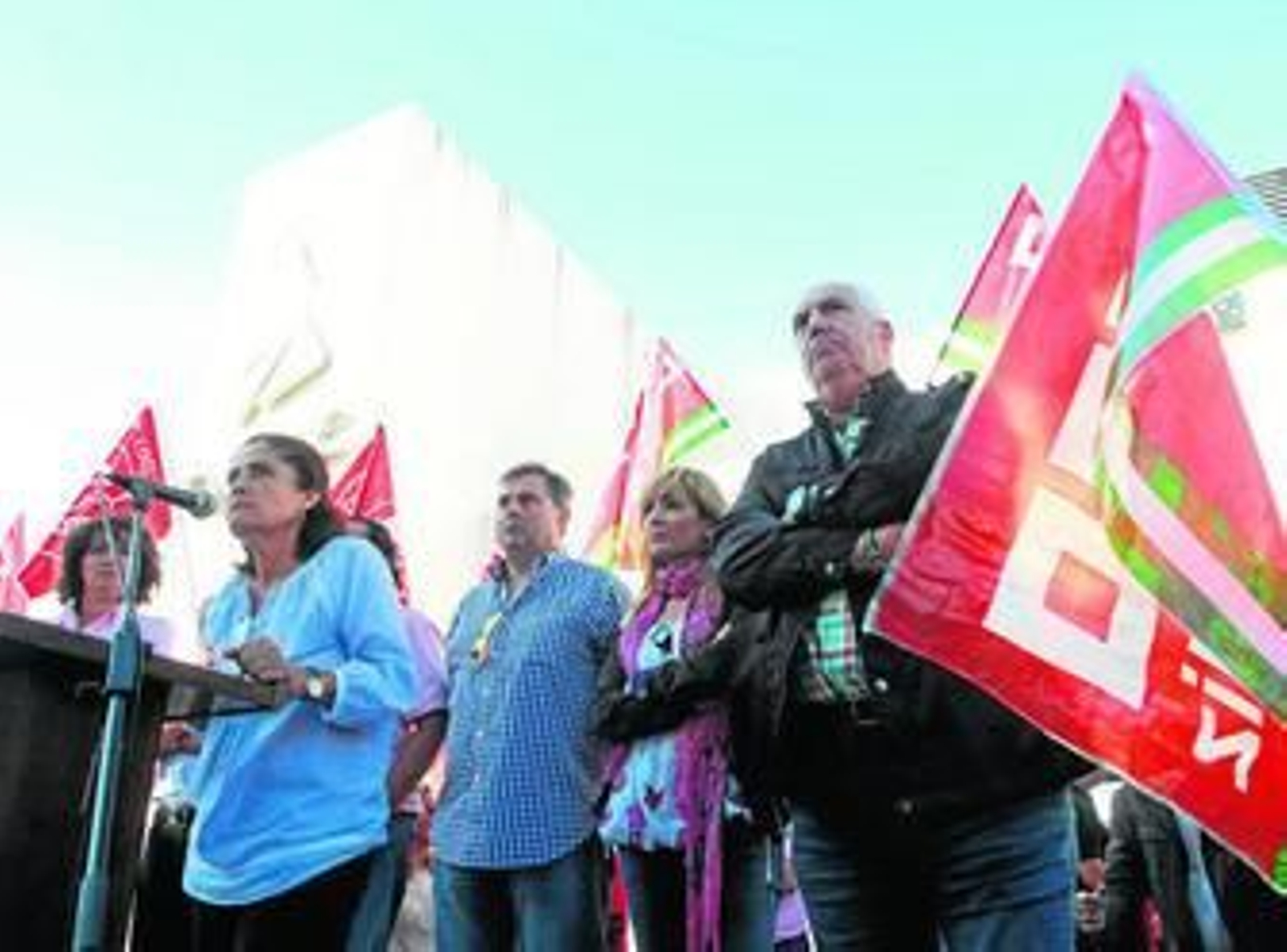 Francisco Carbonero (CCOO) y Carmen Castilla (UGT) reclaman al Gobierno un cambio de rumbo hacia la Algeciras-Bobadilla para combatir el paro Tres alcaldes, en la protesta