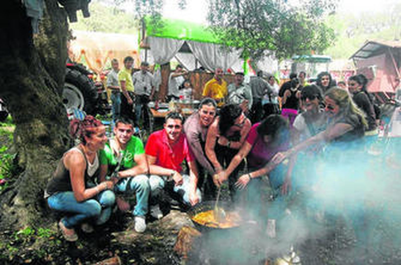 Tras la misa, las familias y grupos de amigos comenzaron a preparar los almuerzos, paellas principalmente, amenizadas por la música de las carretas. Para acelerar la preparación de los guisos, muchos optaron por traer el refrito hecho en casa listo sólo para echar el arroz. En torno a las dos de la tarde, el ambiente desprendía un agradable olor a paella de la que todos dieron buena cuenta e incluso compartieron platos entre peñas como muestra de hermandad entre los romeros. Mientras tanto, la actividad en el área recreativa se veía completada con la zona de juegos para los más pequeños y el paseo de los caballos por el recinto.