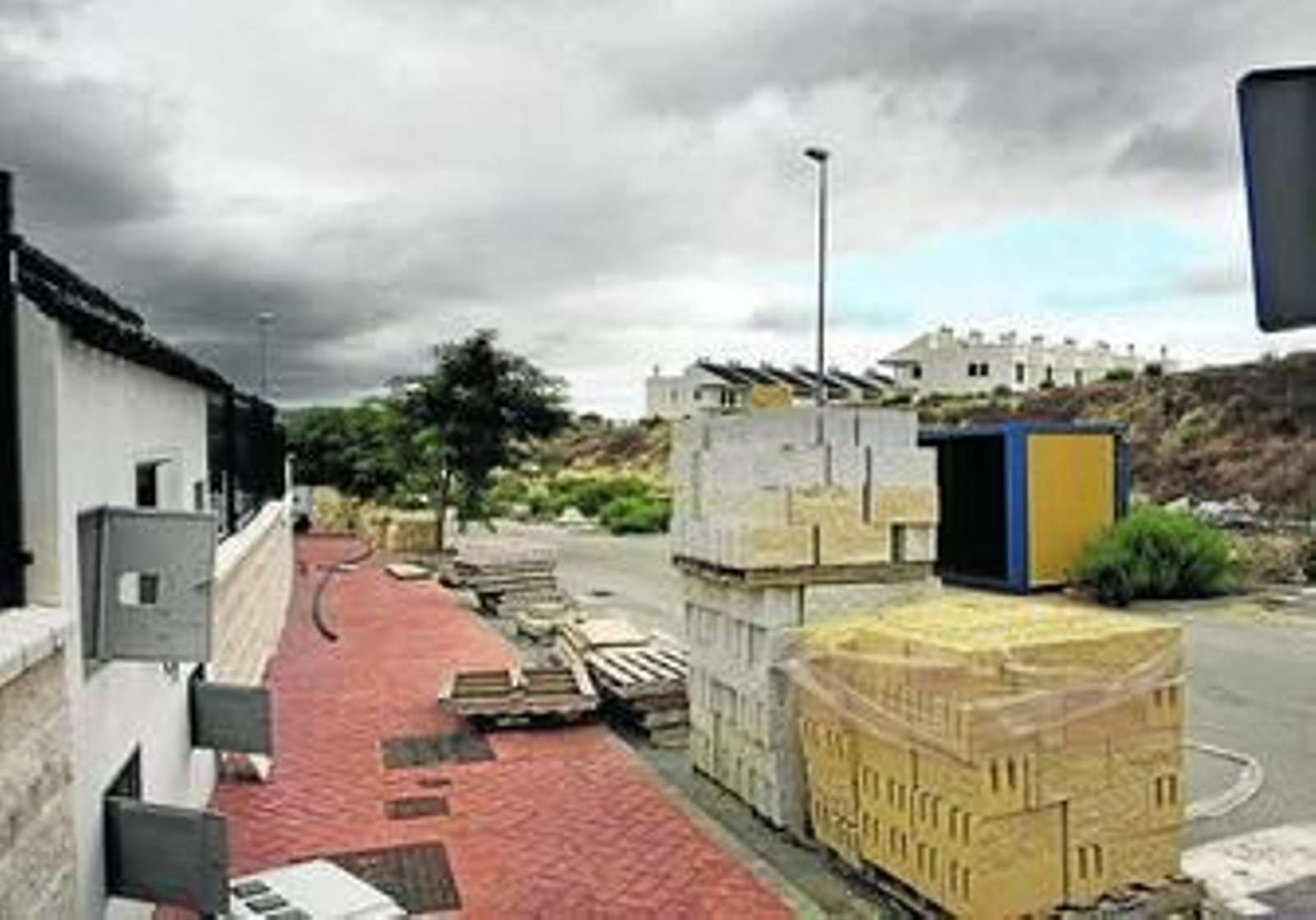En una pastilla de suelo contigua a las obras se almacenan los puntales con los que fueron levantadas las estructuras de las casas, parte de una grúa y materiales de obra. En una esquina quedan apilados bloques de hormigón prefabricado con los que se hicieron los cercados de los coquetos jardines -hoy poblados de malas yerbas secas- en una montaña que mengua según pasan los días.