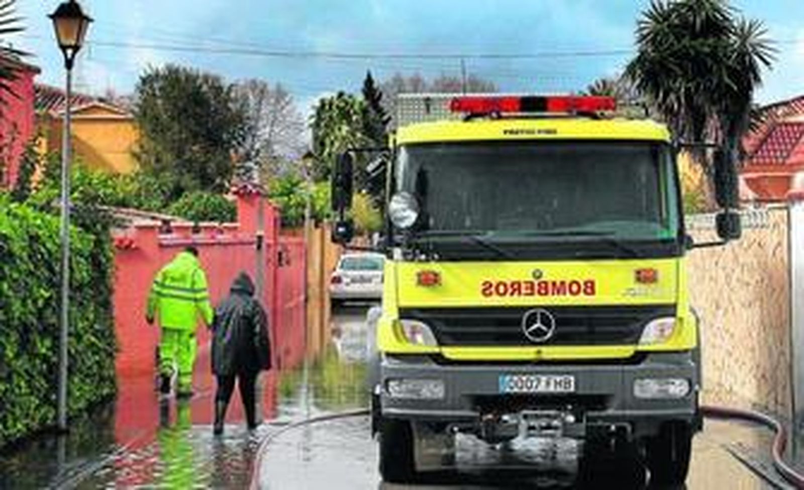 En La Línea, los bomberos achicaron aguas de hasta tres viviendas inundadas en el camino de Marillac por la mañana, además de afianzar la fachada de un edificio de la plaza de la Constitución y acudir a otras dos viviendas que se habían anegado en la barriada de Los Junquillos y en Maestro Jaén.