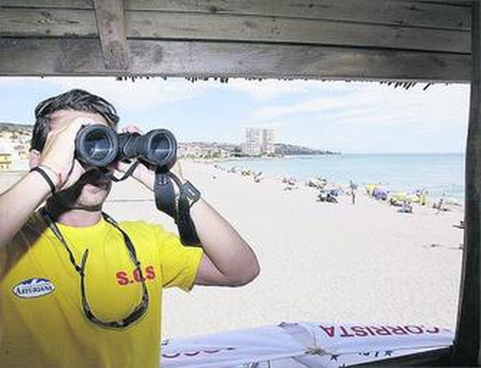 En San Roque, este servicio está gestionado este año por Protección Civil. El día normal de un vigilante puede parecer aburrido cuando empieza, ya que las mañanas no están exentas de una cierta dosis de rutina. Llegan a mediodía, ven como está el viento, la mar, y comienzan a montar los puestos. Cada uno se queda pendiente de la zona de vigilancia asignada.
