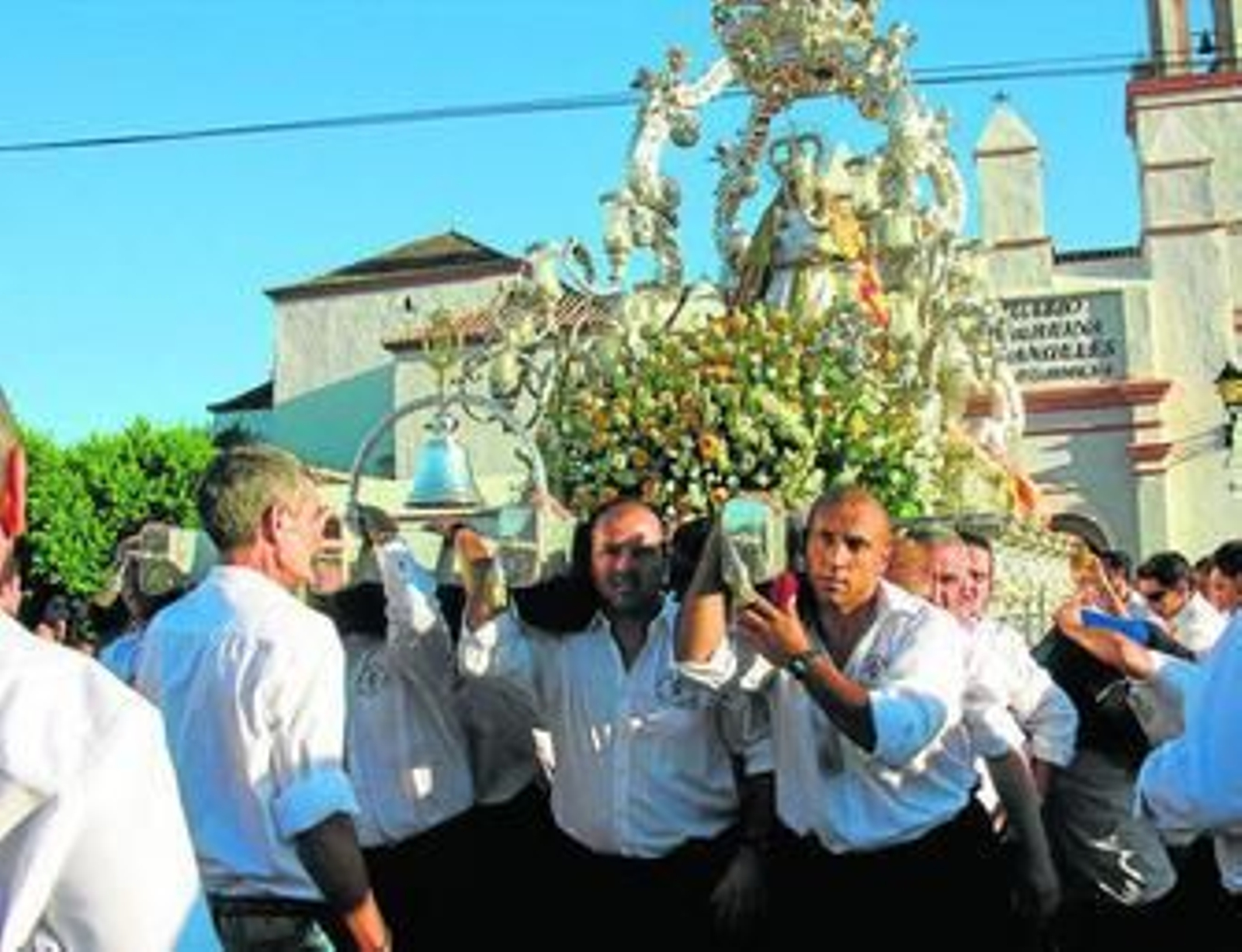 Entre ellos, muchos padres, a la espera del primer encuentro de sus hijos con la imagen de la virgen. Poco después de las 19.30 horas, comenzaban a repicar las campanas del convento en el que vive la patrona de Jimena, que aún sorprende por su inmaculado aspecto después de los trabajos de restauración a los que fue sometido recientemente. Era una señal conocida por todos y que indicaba que, en breve, la reina de los jimenatos saldría por la puerta de su templo a su encuentro con sus fieles, algo que ocurriría poco después cuando la imagen, a hombros de miembros de su hermandad y sobre un trono que data del año 2004, iniciaría su habitual recorrido. El acompañamiento musical correspondió este año a la Banda de Música de Puerto Real. En su camino desde el Santuario hacia las calles de Los Ángeles, la procesión volvería a encontrarse con el tren que a esa hora circulaba por el tendido férreo que discurre paralelo al camino de entrada y salida al templo. Son dos símbolos, el Santuario y el tren, identificativos de lo que es el propio pueblo de la Estación puesto que están en el origen mismo de su nacimiento. Una vez cruzado el paso a nivel, la imagen de la patrona comenzó su recorrido por las calles del núcleo, pasando por sus puntos más característicos, desde el Michigán a la travesía, antes de regresar al templo, algo que estaba previsto para las 23.00 horas aproximadamente.