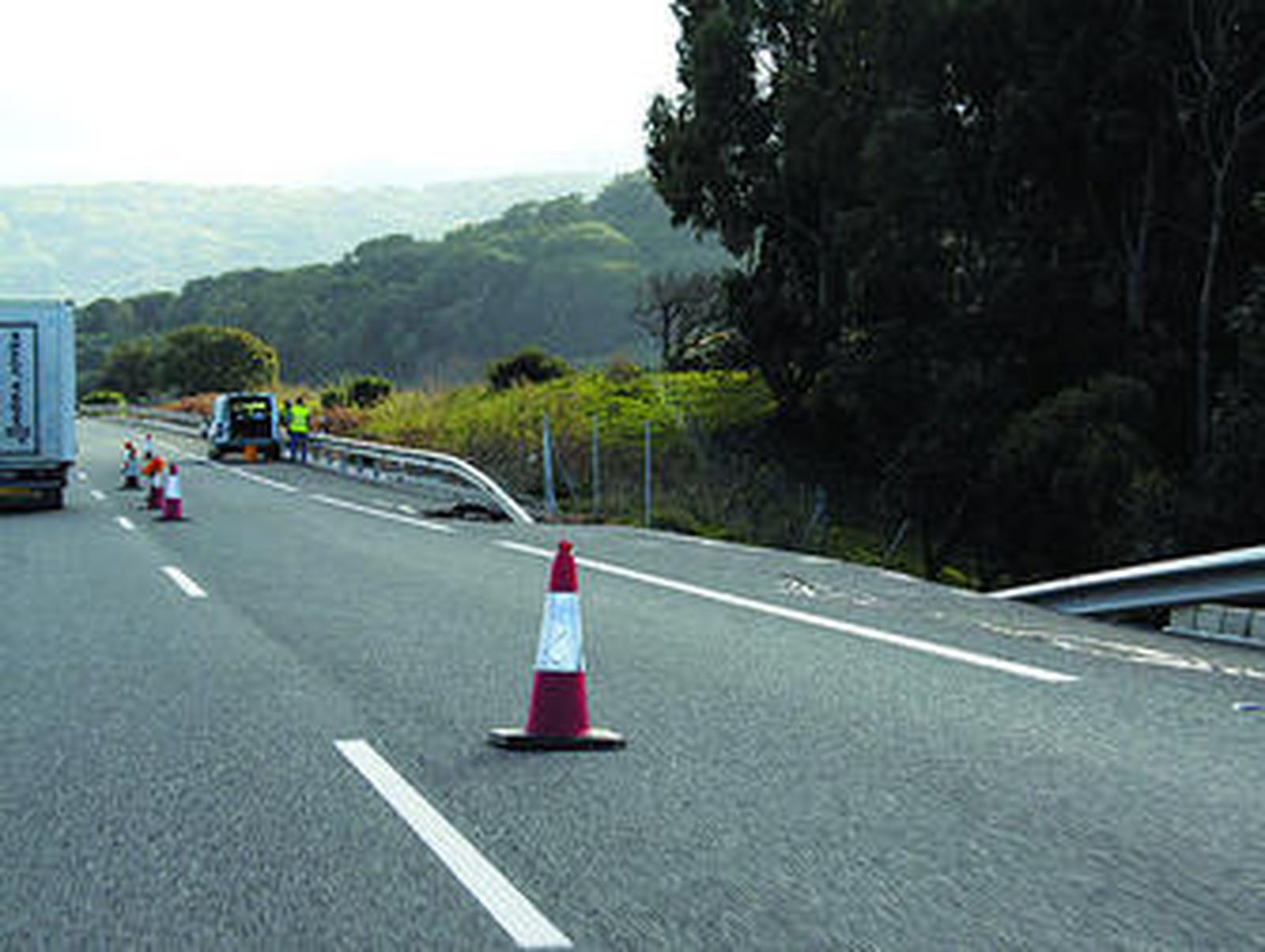 Las últimas lluvias registradas en la comarca a primeros de diciembre han provocado daños en el arcén de la autovía A-381, a la altura del paraje de Charco Redondo, que presenta un socavón producido como consecuencia de un deslizamiento del terreno.