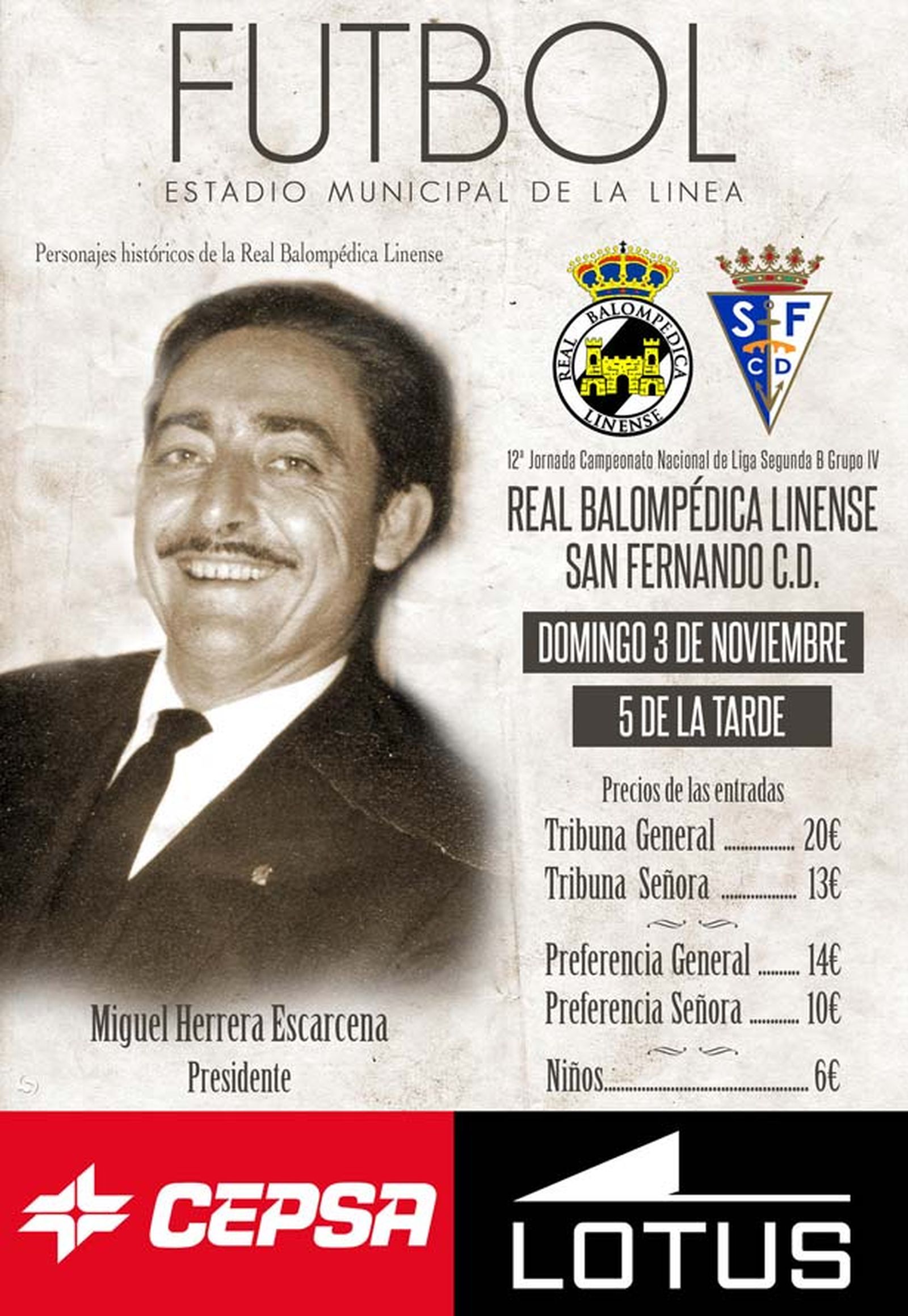 La Real Balompédica brinda esta jornada en el cartel anunciador del encuentro de esta tarde un más que merecido homenaje a quien hizo de casi todo en el club en la década de los setenta: el empreasario linense Miguel Herrera Escarcena. Un hombre que se hizo tan indispensable como querido por su carácter.