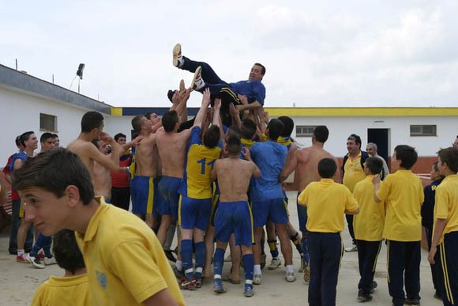 El presidente, Paco González, visiblemente emocionado después de ser manteado por sus jugadores, dedicó el éxito a quienes le precedieron como directivos e hizo partícipe del ascenso “a todo el fútbol de La Línea”.