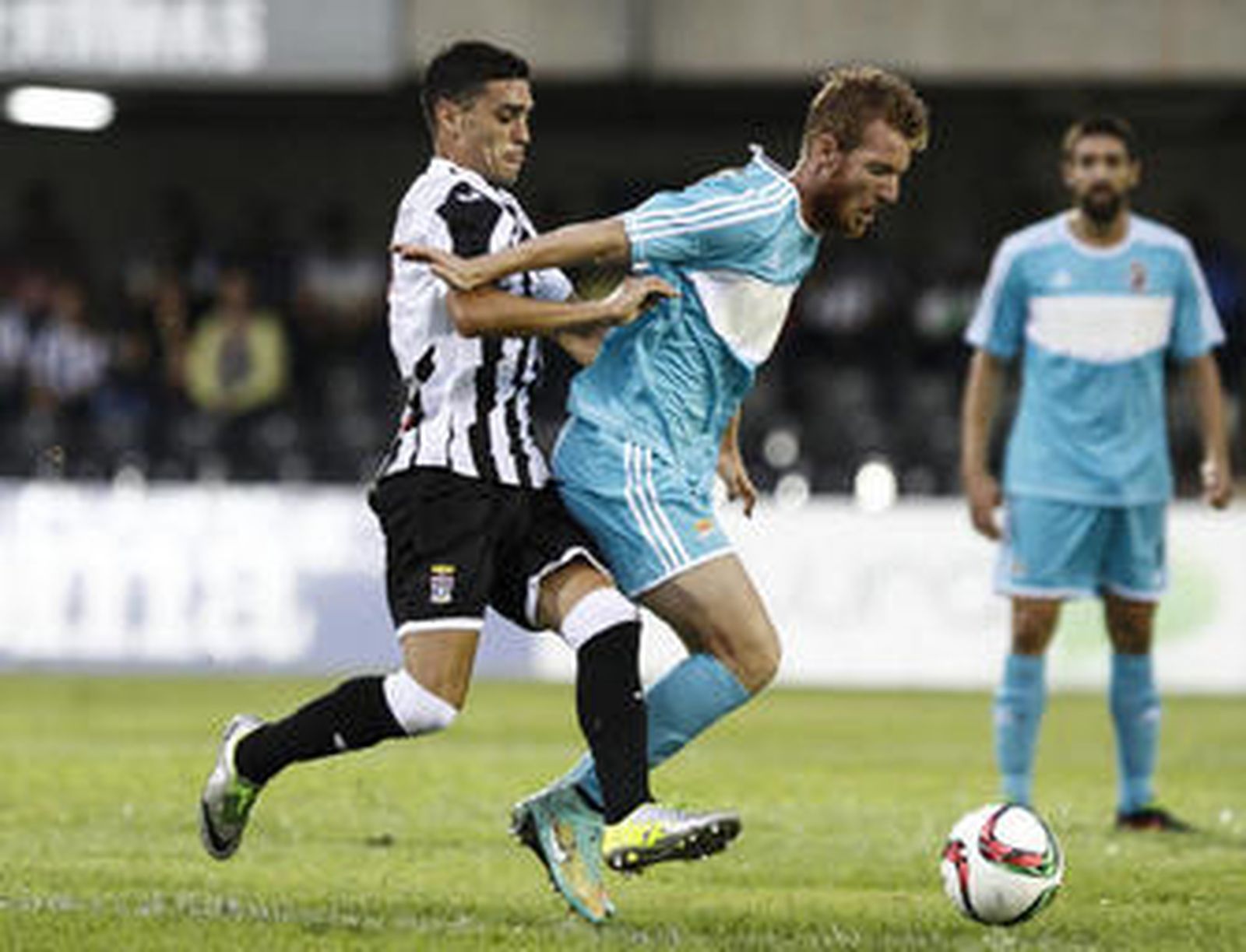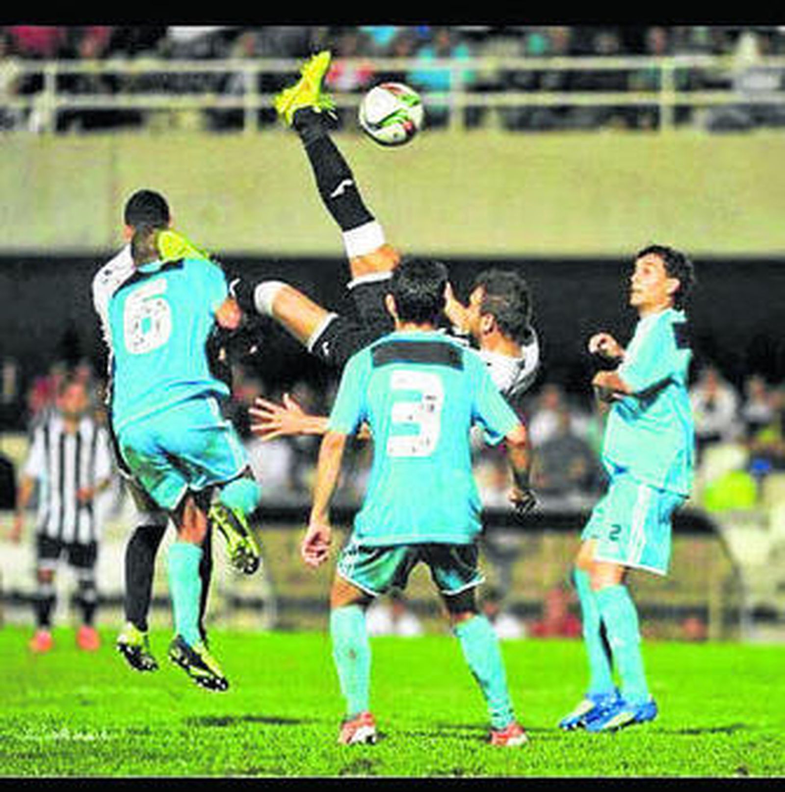 La Balompédica estrenó su casillero de puntos y rompió con el maleficio casi histórico que le perseguía en sus visitas a Cartagonova. Los balonos acariciaron la victoria por ocasiones, pero lo que deja peor sabor de boca a su parroquia es que el tanto del empate departamental llegó en una jugada en la que Gonzalo Verdú realizó una acrobática chilena en la que cometió juego peligroso, ya que [como demuestra la imagen que acompaña a esta crónica] tenía a Ismael Chico prácticamente a su lado. Espinar, suplente ayer de manera sorpresiva, tuvo el 1-2 en los instantes finales, pero al contrario de lo que le sucedió el miércoles en Copa, no atinó con el marco.