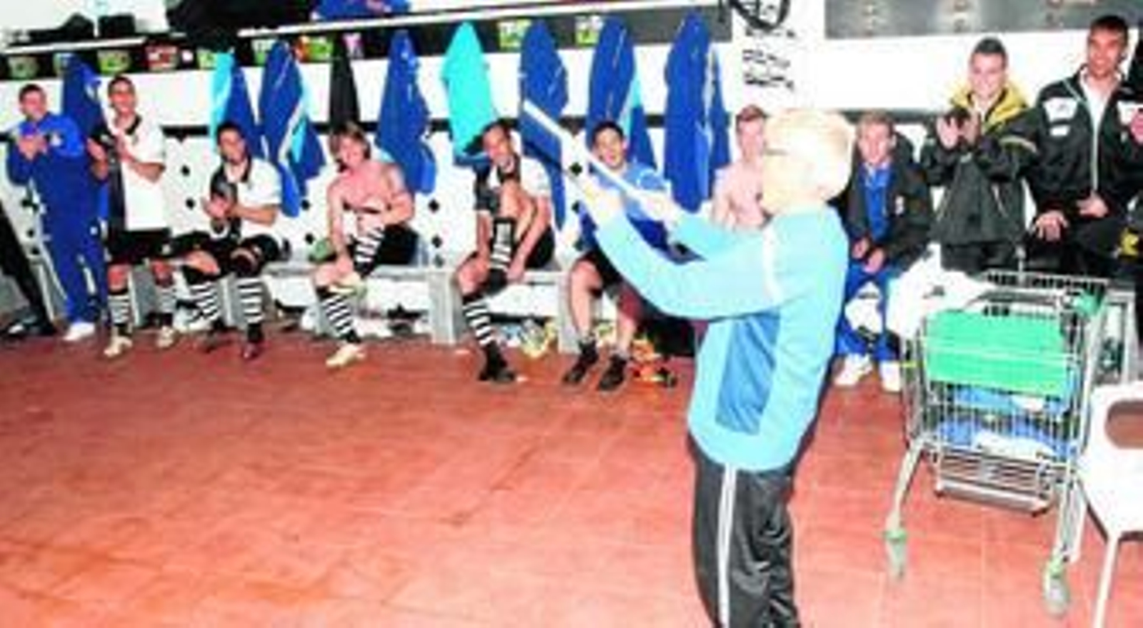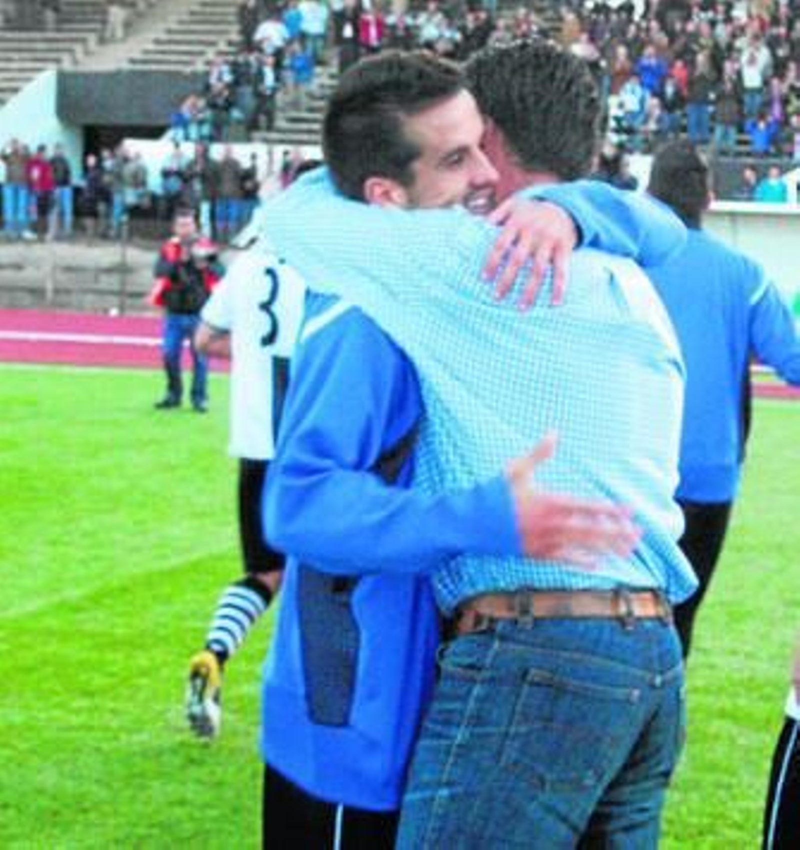 Los festejos no concluyeron ahí. Nada más finalizar el partido entre los albinegros y el Lucena y después de que el preparador visitante, Rafael Carrillo 'Falete' acudiese al banquillo local para abrazar y felicitar al que fue su entrenador, Rafa Escobar, los jugadores hicieron un círculo sobre el césped sintético y comenzaron a dar palmas mientras Bello, que ayer era especialmente feliz por muchos motivos, bailaba con cara burlona.