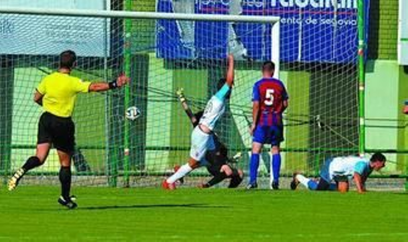 Un cabezazo con el alma de Adrián Máiquez permite al Algeciras empatar en el 65' en casa de la Segoviana, donde recibe un mazazo de penalti en el 51', y afronta con ventaja la vuelta en el Nuevo Mirador