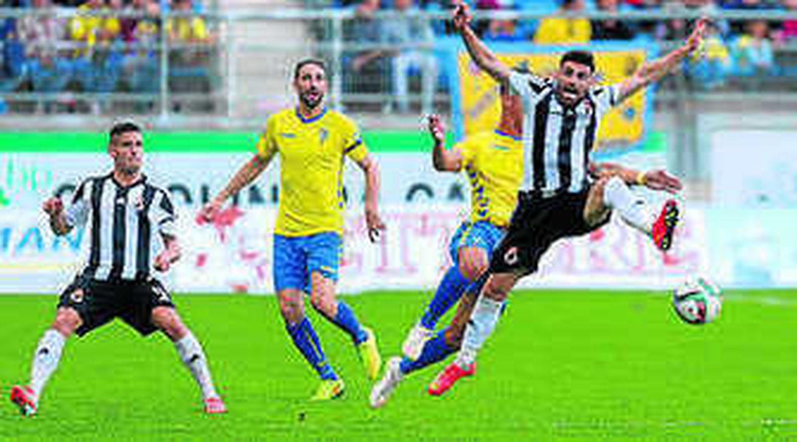El Cádiz se empeñó en demostrar con cabezonería que sigue inmerso en una crisis que, más allá de la mentalidad, afecta de lleno al fútbol, mientras que la Balompédica no parecía para nada un inquilino de la zona roja de la clasificación. Tanto es así que los de Claudio sólo generaron de verdad una ocasión de gol poco después de la media hora, cuando Güiza -a pase de Hugo- se quedó solo delante del portero, que evitó con un pie el que hubiese sido el primer tanto.