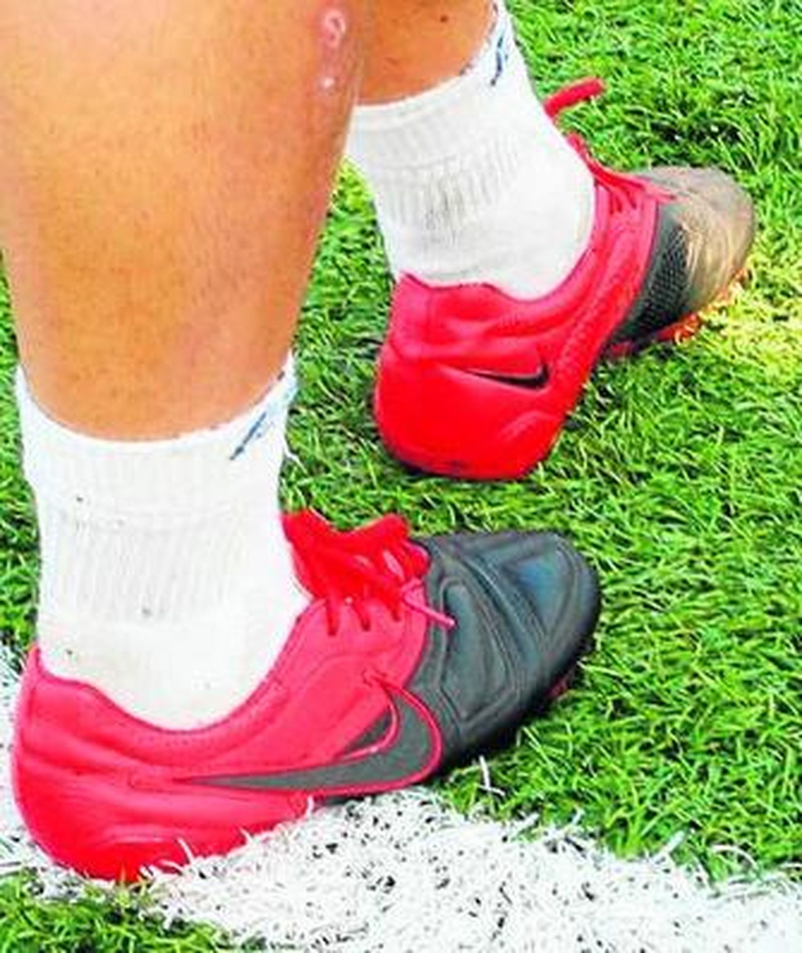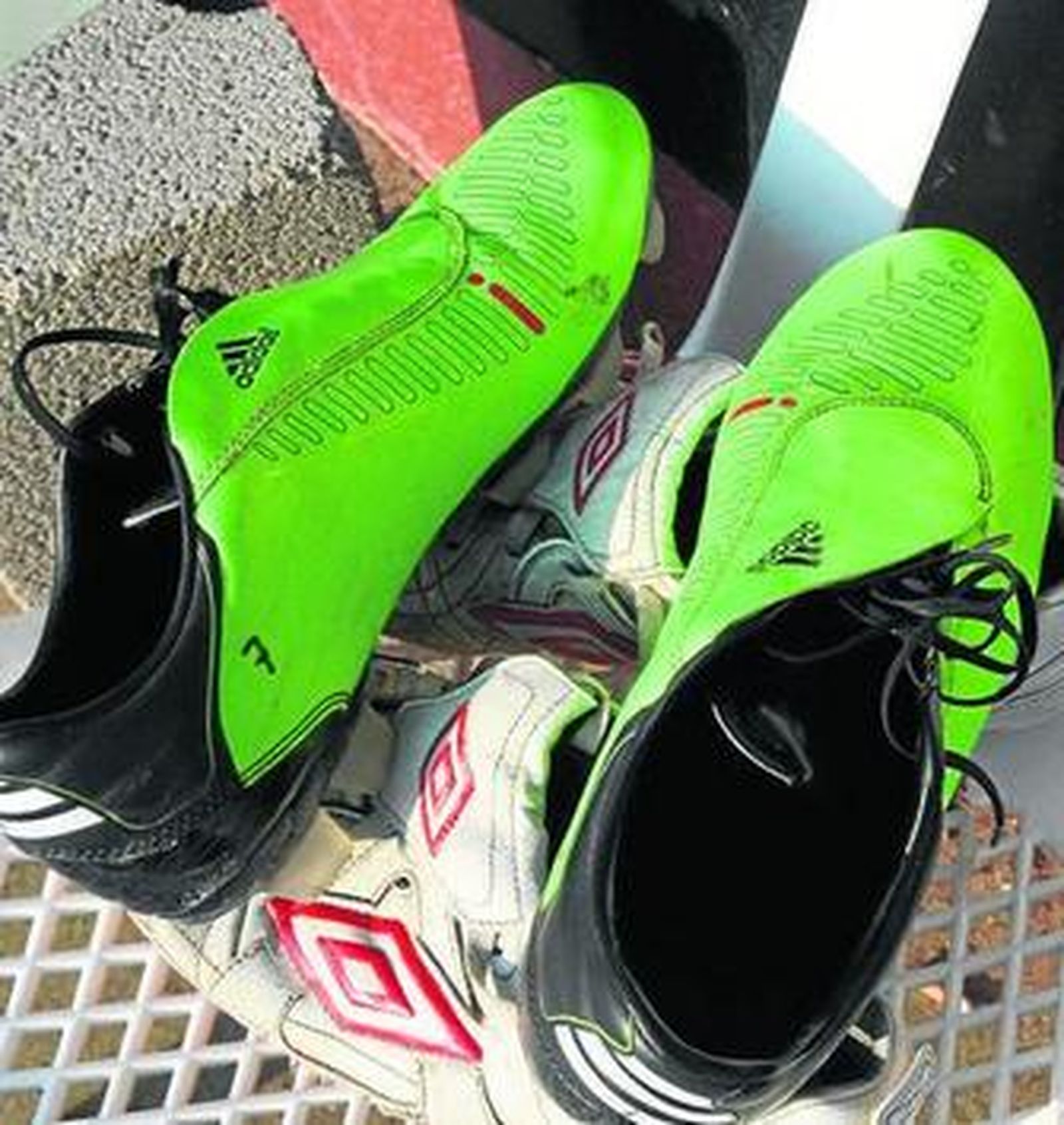 Los entrenamientos de la Real Balompédica se han constituido en un improvisado expositor de botas de fútbol de los más diferentes modelos, que van desde los cincuenta a los doscientos euros de precio