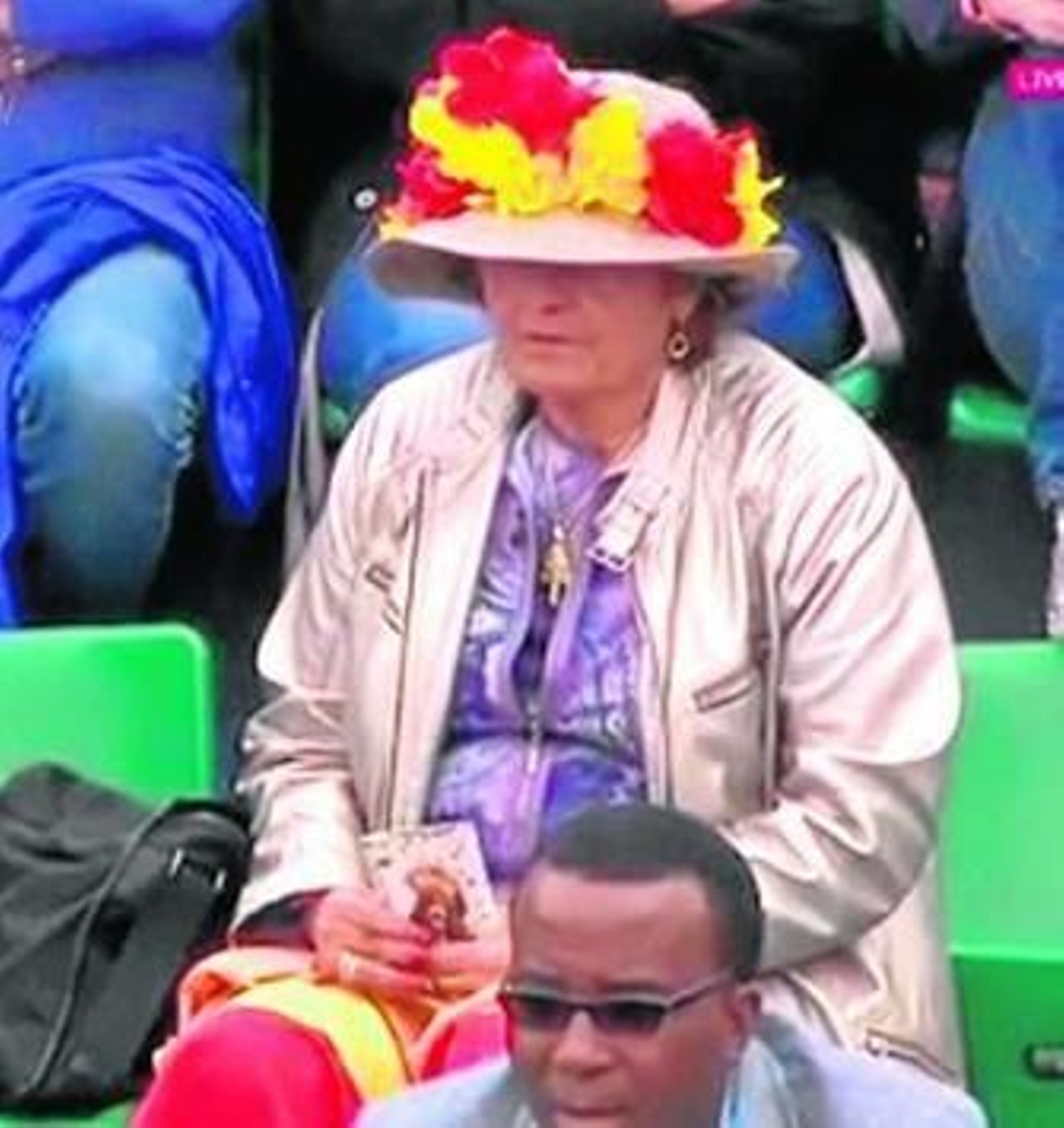 La sanroqueña Ana María Núñez Guzmán pasó el pasado sábado en apenas unas horas de ser una absoluta desconocida para el gran público a desatar pasiones en las redes sociales. La señal internacional de televisión reparó repetidamente en su peculiar imagen -con una florida pamela, las uñas pintadas de rojo y gualda y una bandera con los colores nacionales con el nombre de San Roque- durante la disputa de la final femenina de Roland Garros, hasta el punto de arrebatarle parte del protagonismo a la mismísima campeona del torneo de tenis más importante de cuantos se celebran sobre tierra batida, Garbiñe Muguruza.