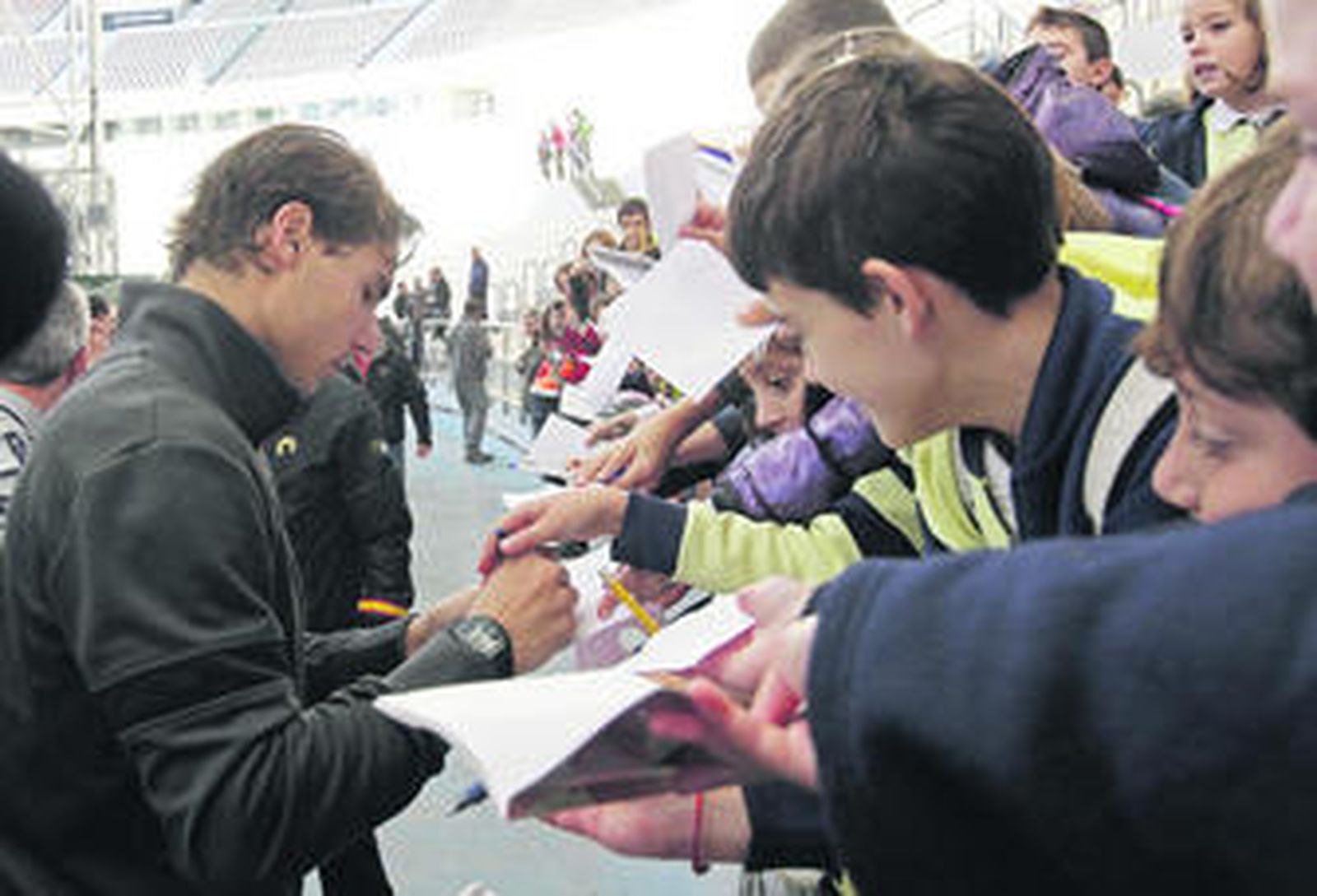 l Poco a poco se acerca la gran final de la Copa Davis que jugarán este fin de semana España y Argentina. Ya casi no quedan entradas para la cita en el estadio de La Cartuja sevillano. Después de que ayer se incorporara a los entrenamientos el número 5 del mundo, David Ferrer, el capitán Albert Costa ya dispone de todos sus efectivos para plantar cara a un rival que también está muy habituado a jugar sobre tierra batida. Pero cuando se trata de jugar sobre esta superficie nadie ofrece las garantías de Rafa Nadal, el mejor especialista de la historia. El manacorí apareja a sus excepcionales cualidades deportivas las humanas, y siempre tiene un hueco para atender a sus numerosos admiradores, en este caso un grupo de niños, que ansían hacerse una foto con él o que les firme un autógrafo. Por algo es el gran ídolo del deporte nacional.